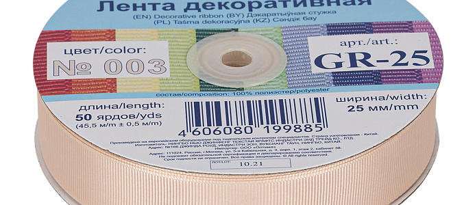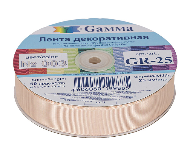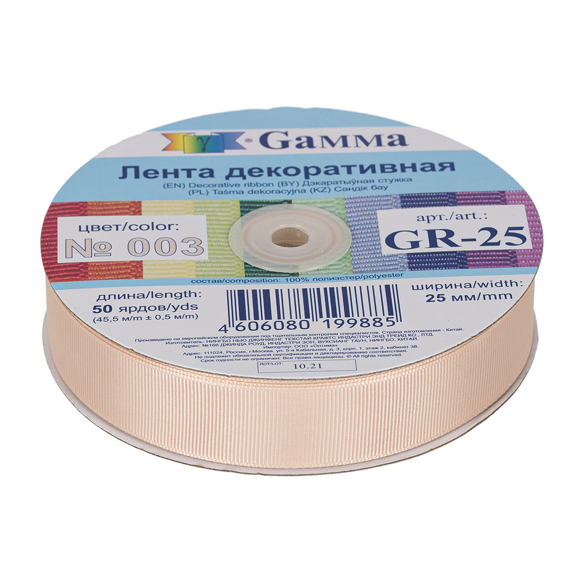 Лента репсовая GR-25 цв. № 003 цв. светло-бежевый