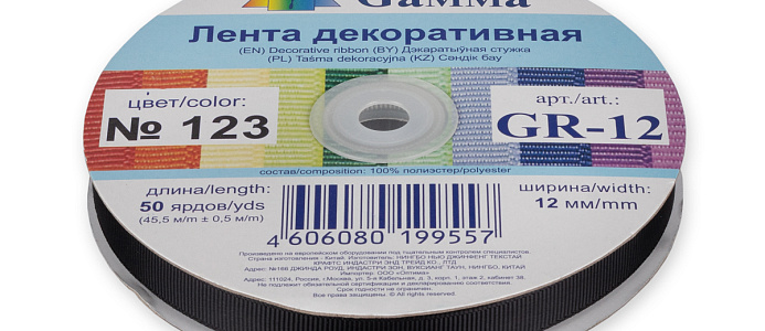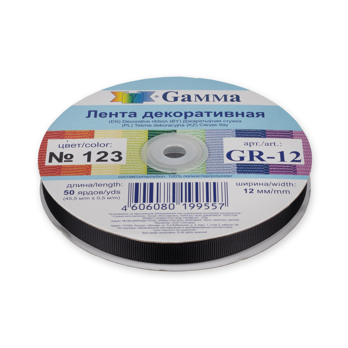 Лента репсовая шир.12 мм № 123 цв. чёрный