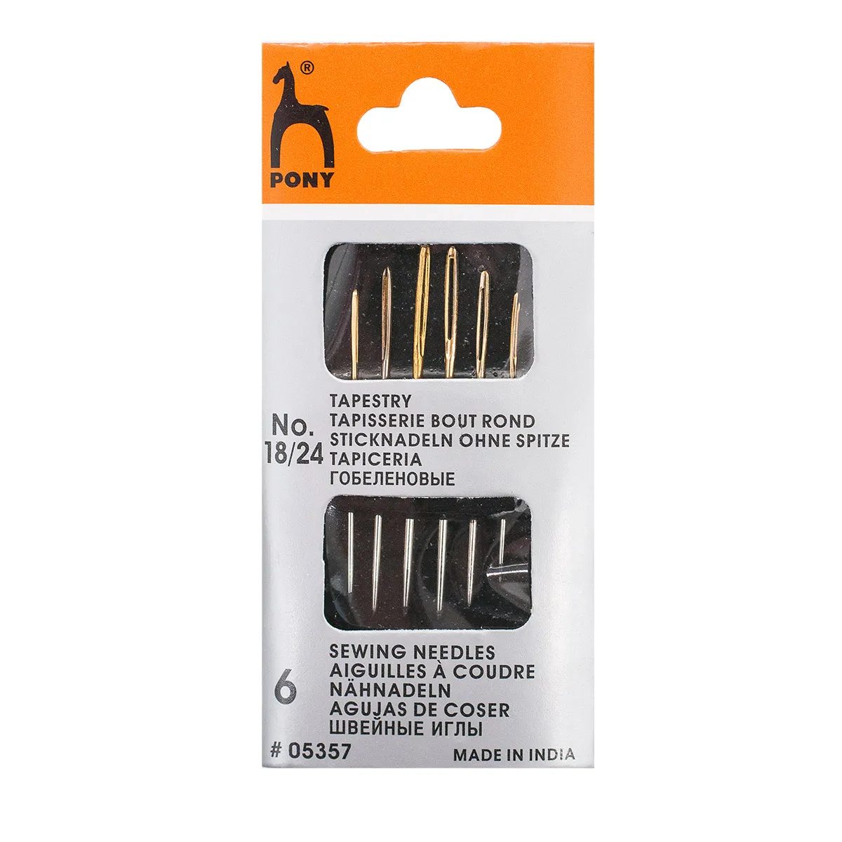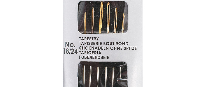 Стальные иглы Pony 'Tapestry' предназначены для работы с трикотажными тканями и гобеленами, а также вышивания крестом по сетчатой канве Aida. В комплект входят 6 тонких игл №26 со скругленным острием и удлиненным ушком. Ушко иглы позолочено, поэтому вдевать в него нить удобно даже при ослабленном зрении.