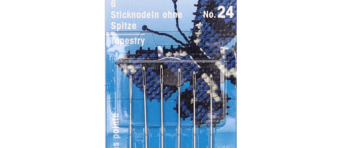 Иглы для вышивания со скругленным острием и большим ушком. Изготовлены из закаленной стали. Они гибкие и прочные. Благодаря скругленному острию игла легко проходит через любые ткани, раздвигая нитки, не повреждая структуру волокон. Ушко иглы имеет особое строение, а большой размер позволяет вышивать толстыми нитками, шерстью, лентами.