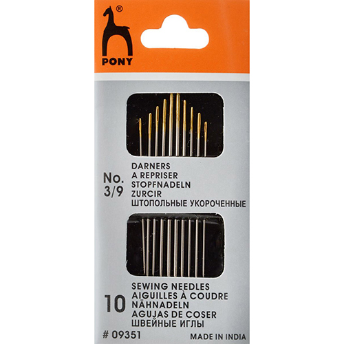 Универсальные штопальные иглы Pony изготовлены из качественной прочной стали, имеют широкое позолоченное ушко, облегчающее вдевание нитки. Благодаря укороченной длине, игла очень удобна при работе с грубыми материалами, стыкующимися под углом, например при сшивании подошвы и смежных деталей верхней части обуви. Тонкое острие легко проникает в материал, не нарушая при этом его структуру. В комплекте 10 игл размеров от 3 до 9.