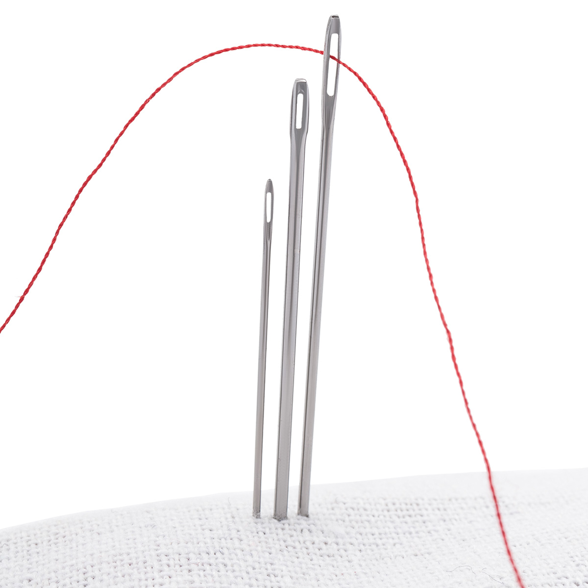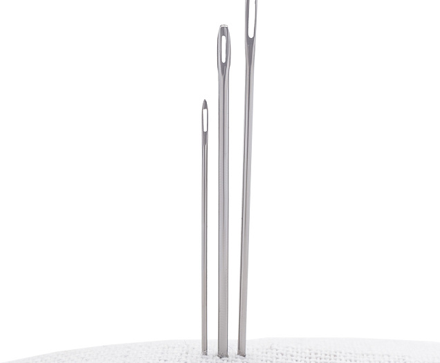 Конструкция каждой иглы тщательно продумана, чтобы стежки получались аккуратными. Благодаря тонкому и хорошо отшлифованному острию игла легко проходит через любые ткани, не повреждая структуру волокон.