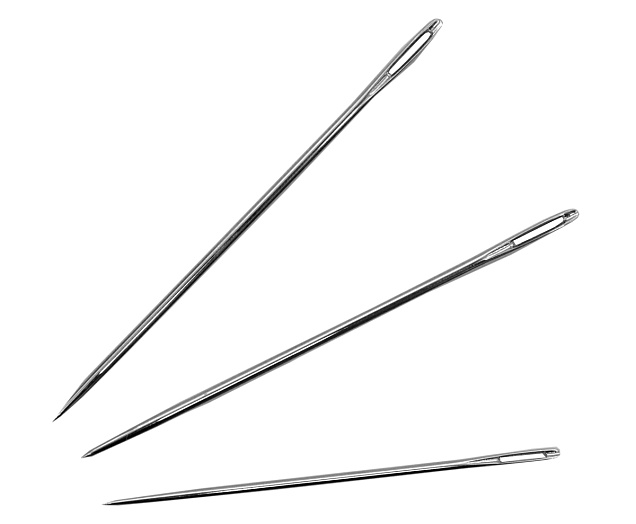 Иглы изготовлены из высокоуглеродистой стали высокого качества. Для защиты от ржавчины покрыты несколькими слоями никеля, имеют привлекательный блеск. Поверхность иглы гладкая, поэтому инструмент легко проходит через ткань. Ушко иглы имеет особую форму, что предотвращает разрыв, а также упрощает вдевание нити.