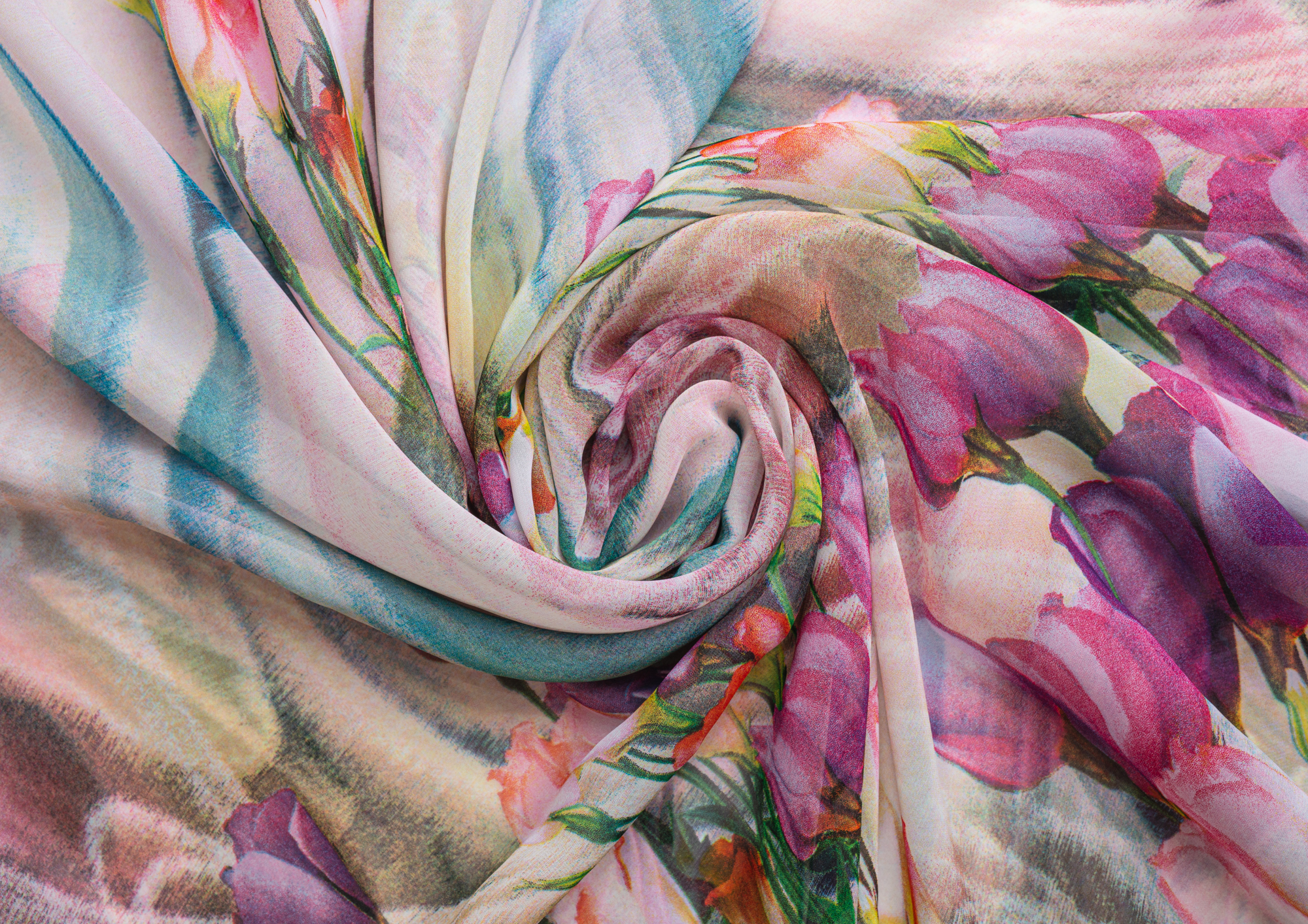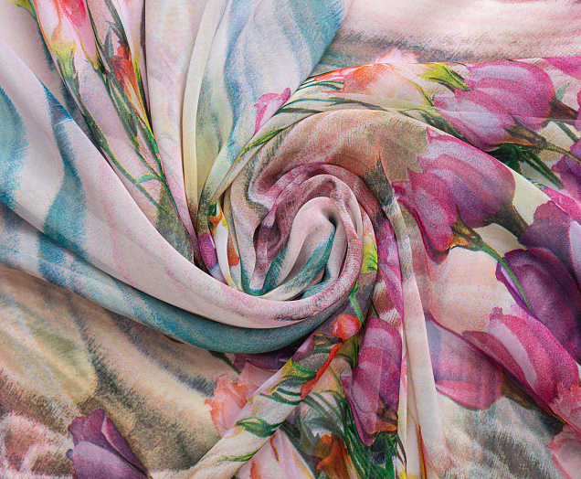 Ткань Шифон купон Розы цв. 2