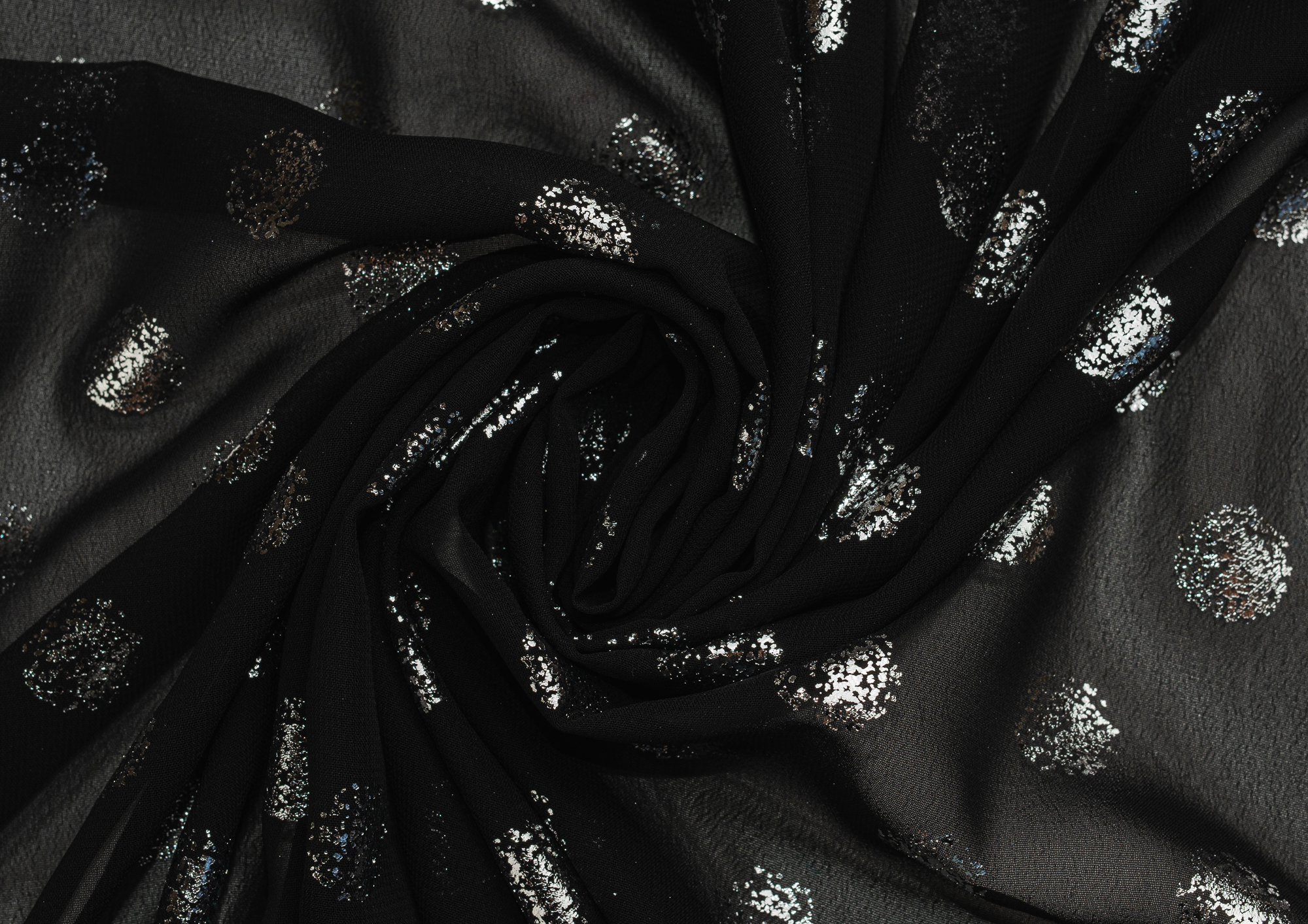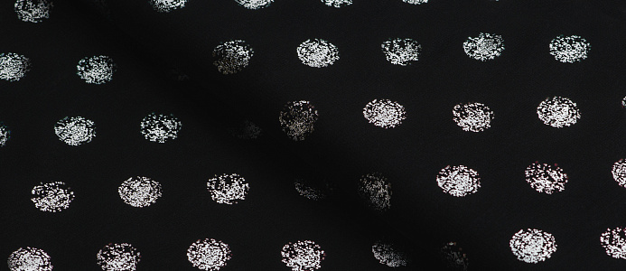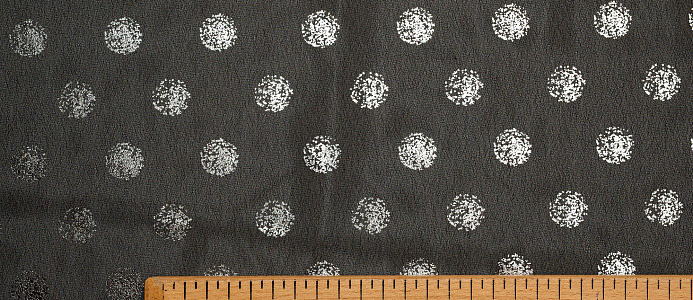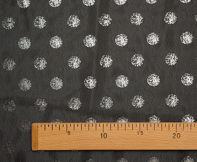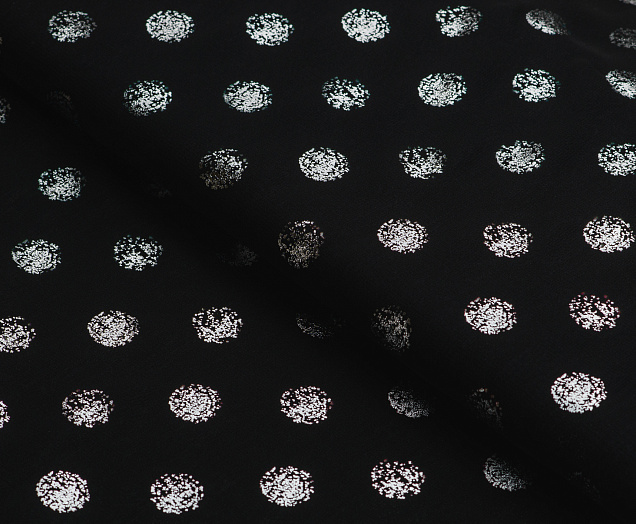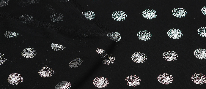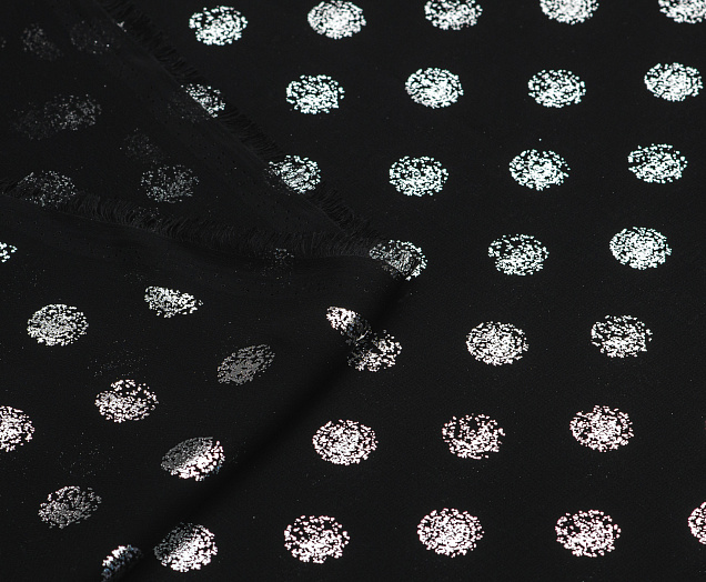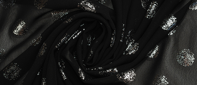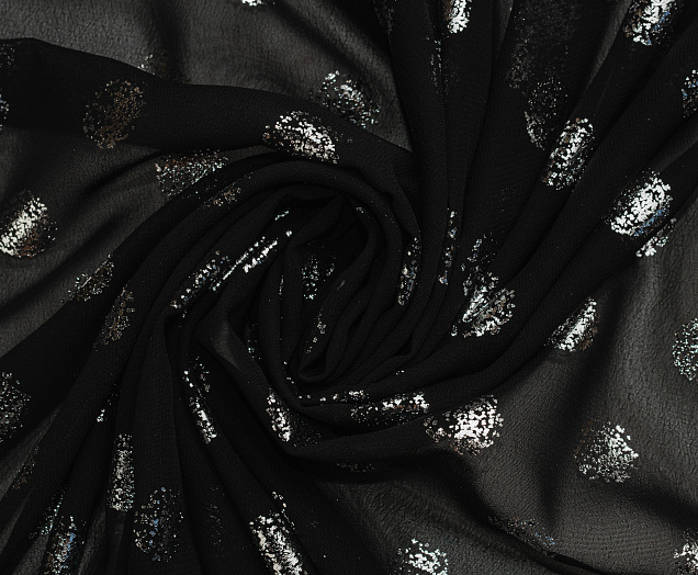 Ткань Шифон с глиттером принт Горох цв. черный с серебром