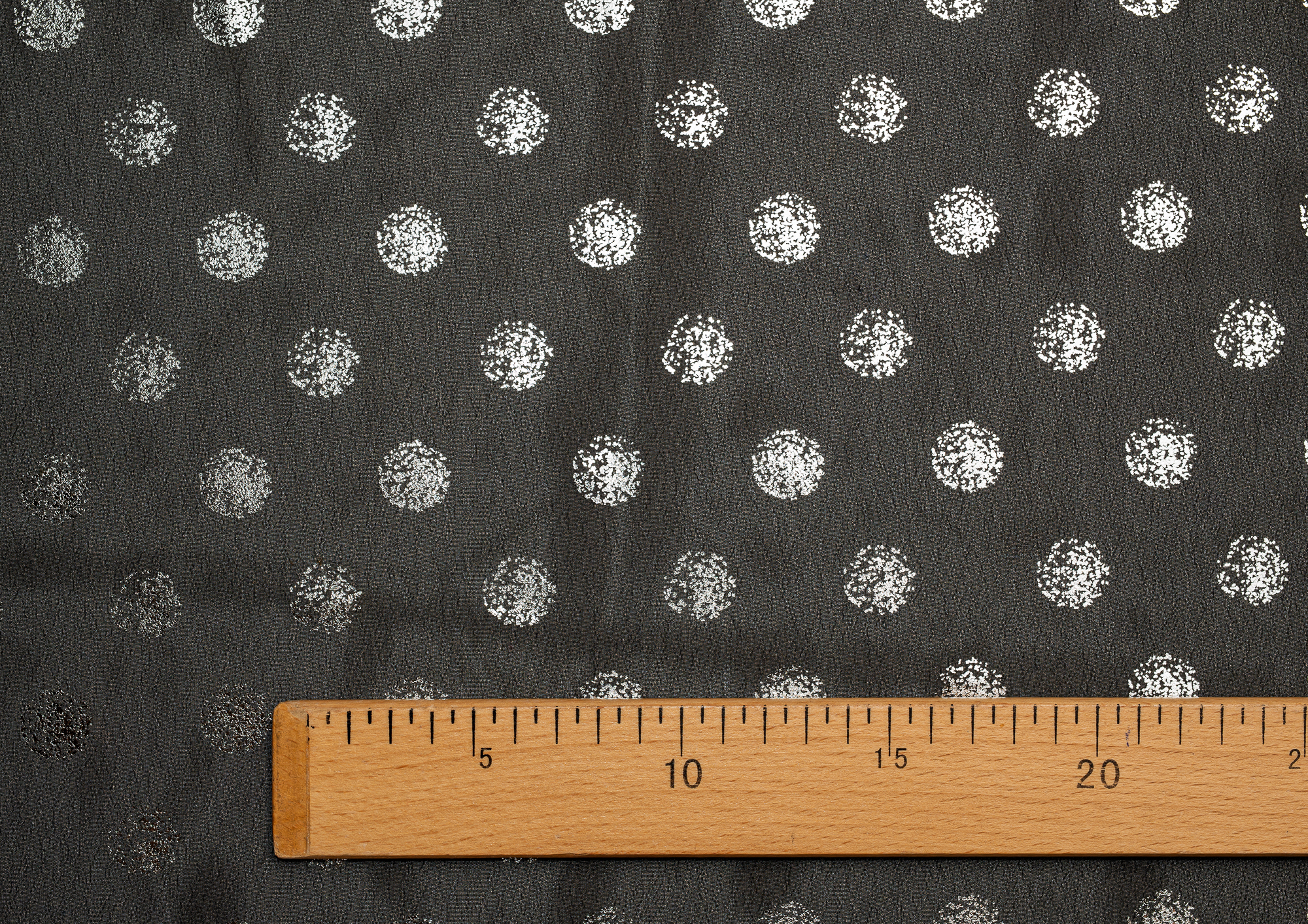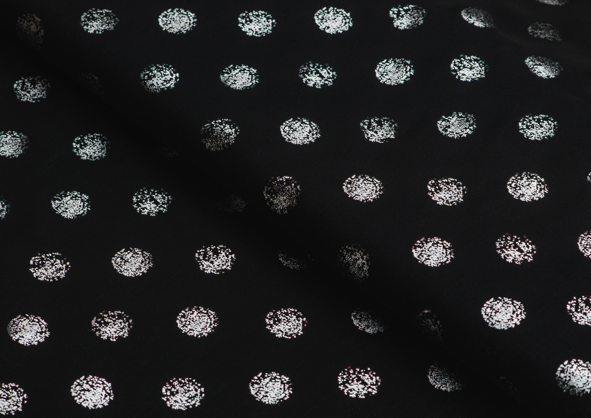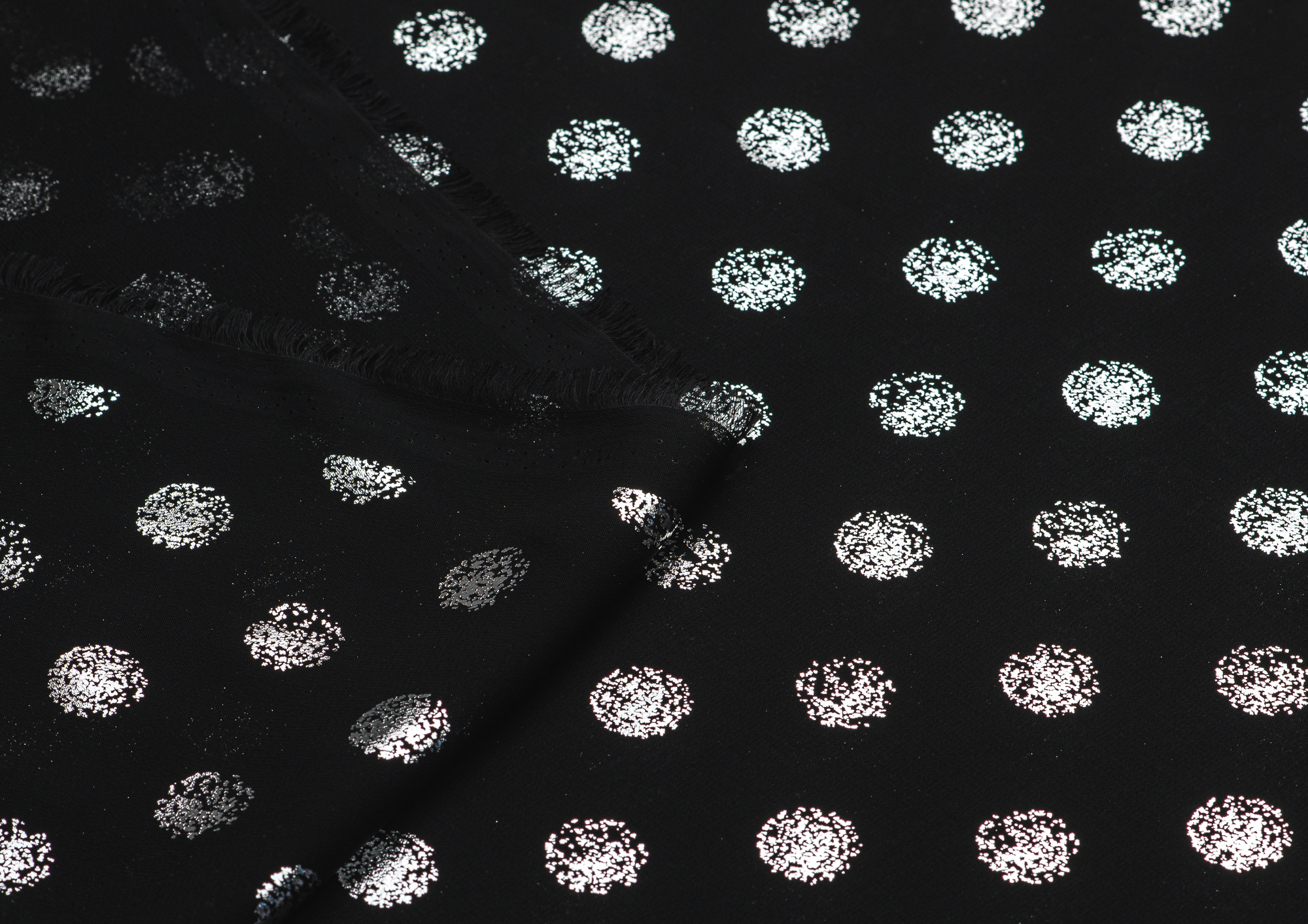 Ткань Шифон с глиттером принт Горох цв. черный с серебром