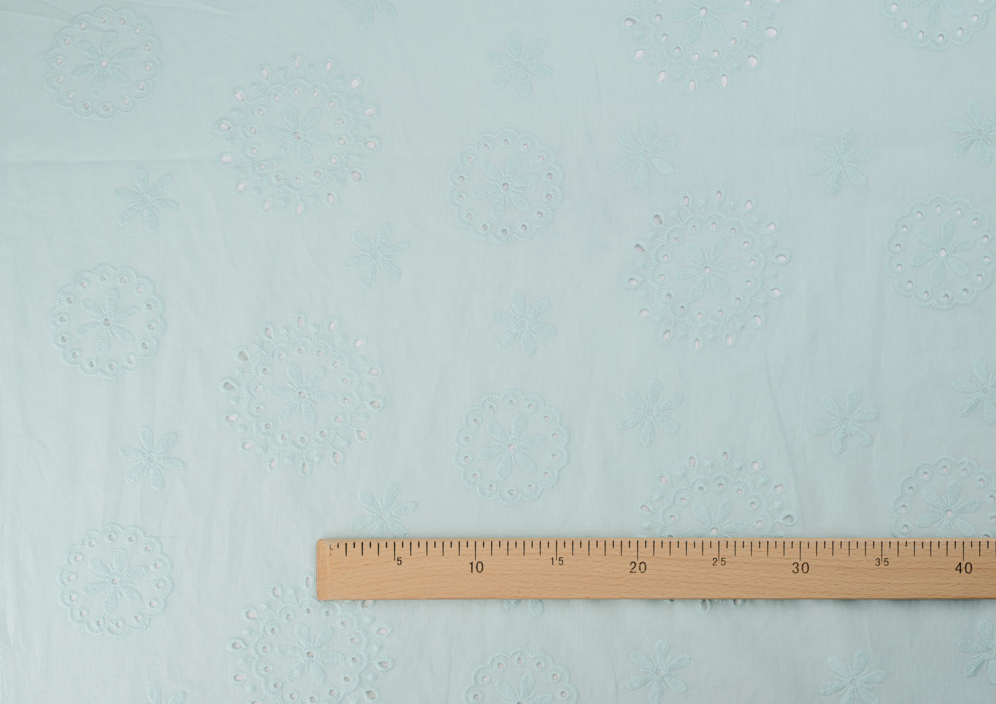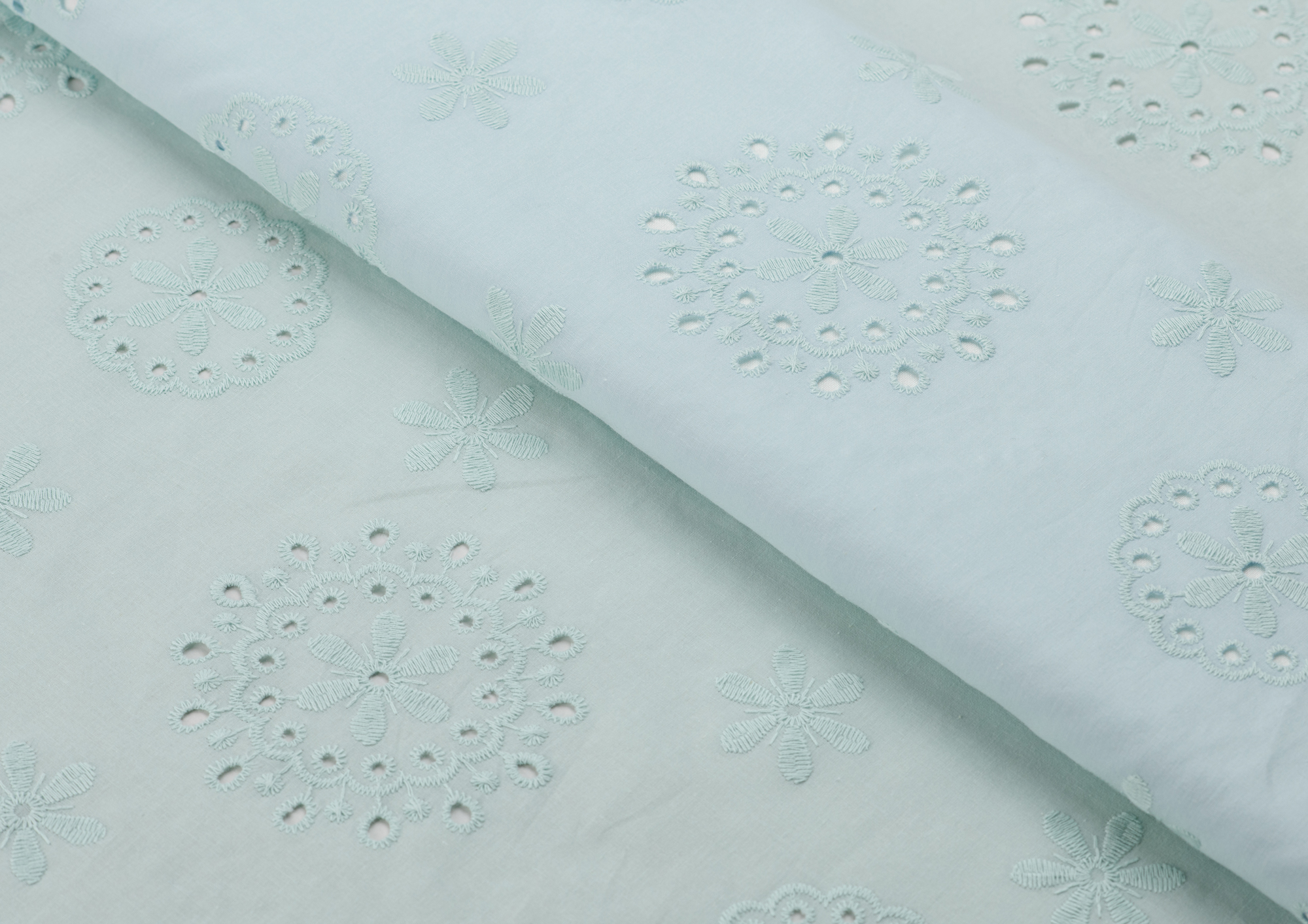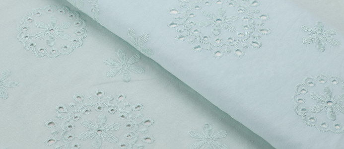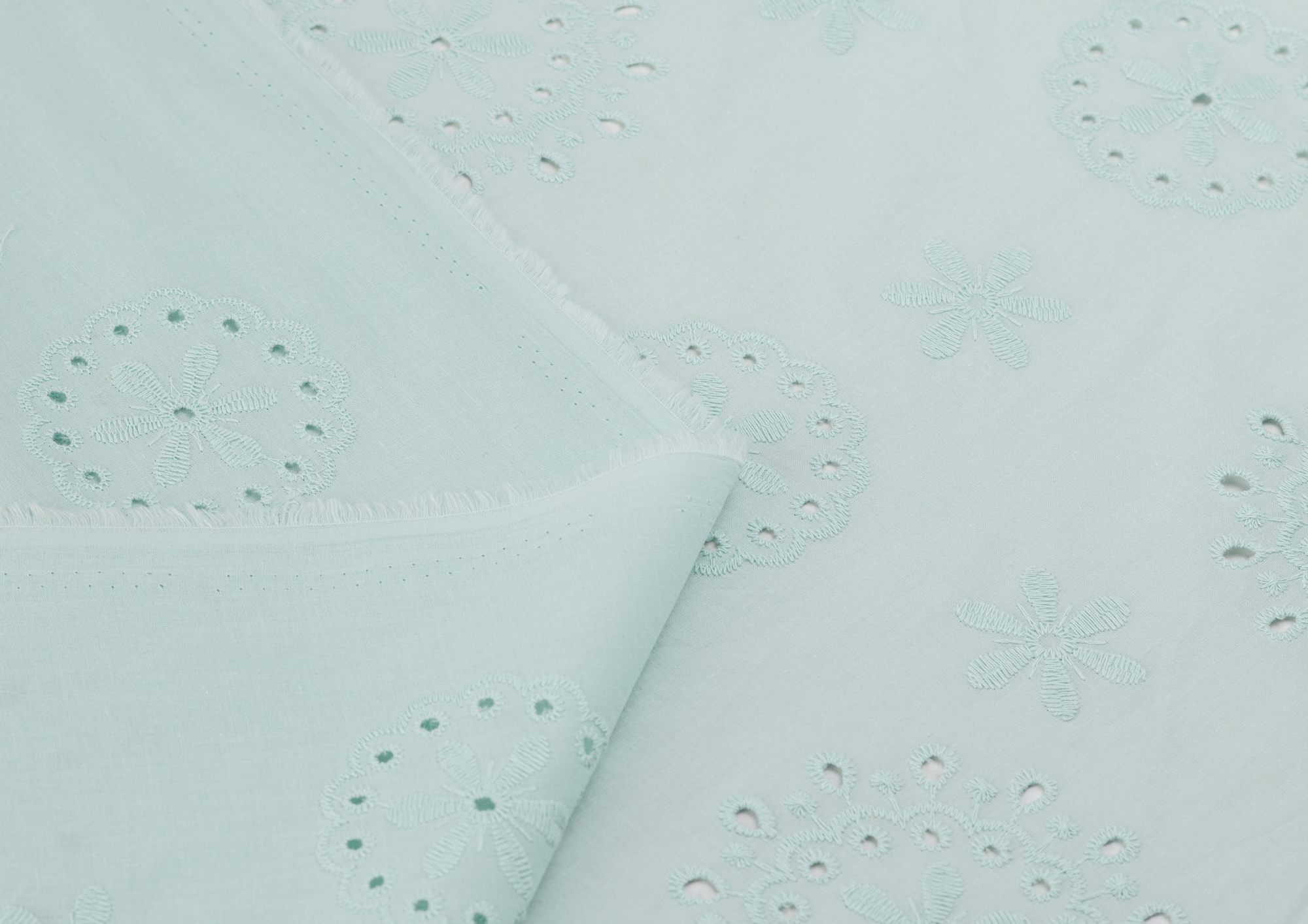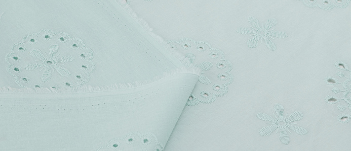 Шитьё - идеальная ткань для пошива летних сарафанов , юбок, платьев и блузок . Легкая , невесомая хлопковая ткань . Вся поверхность полотна расшита крупым орнаментом в виде цветков d: 10 см, 7 см., 4см.