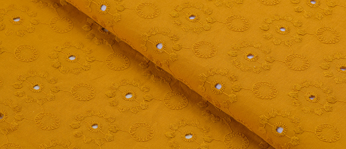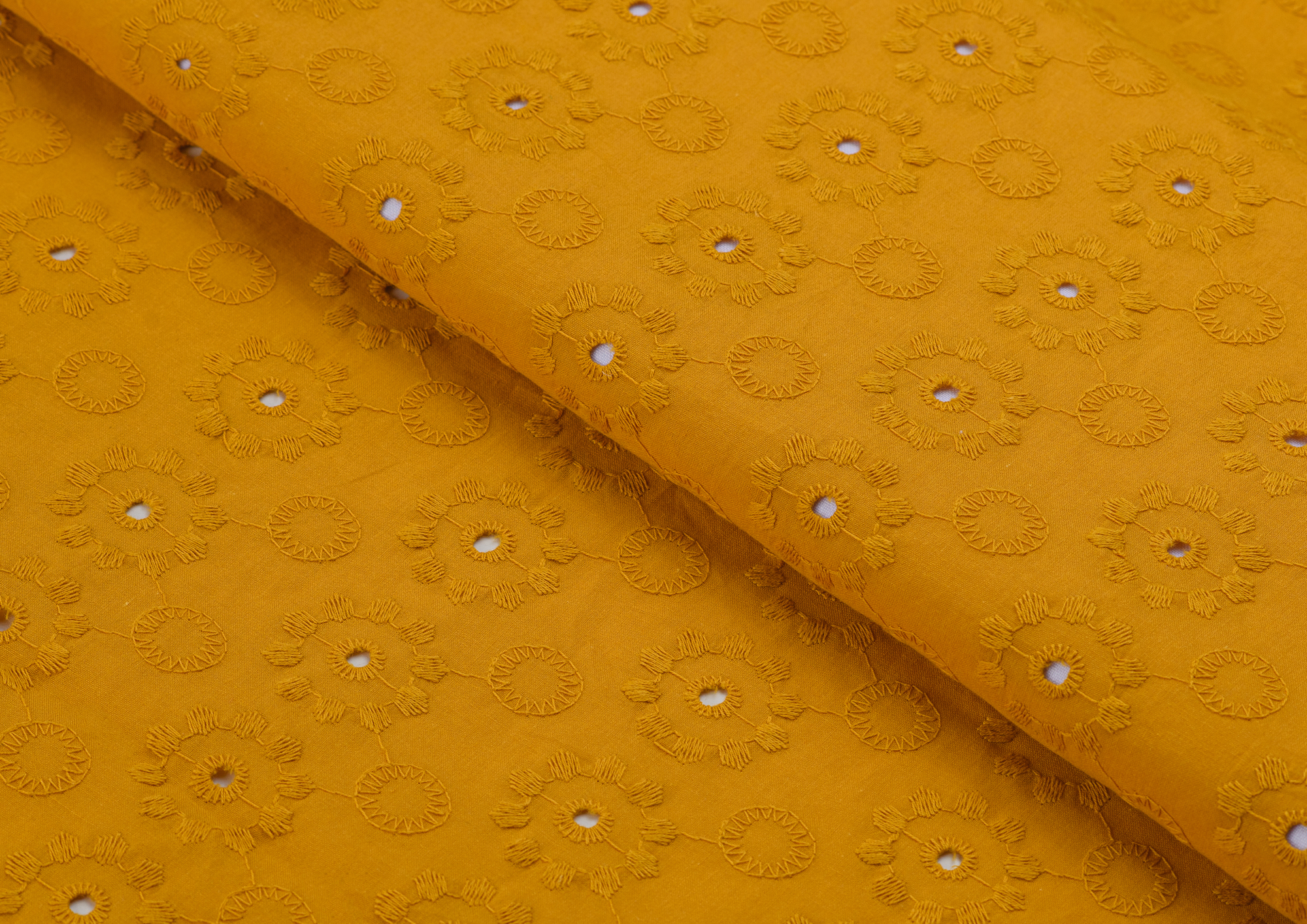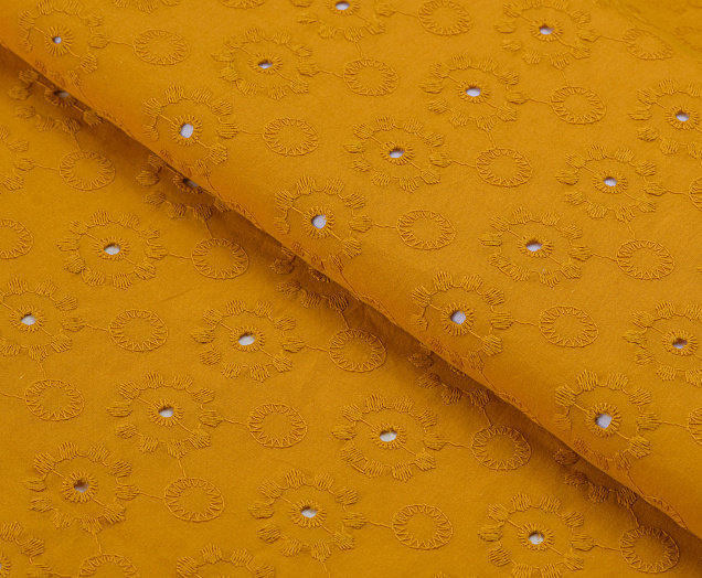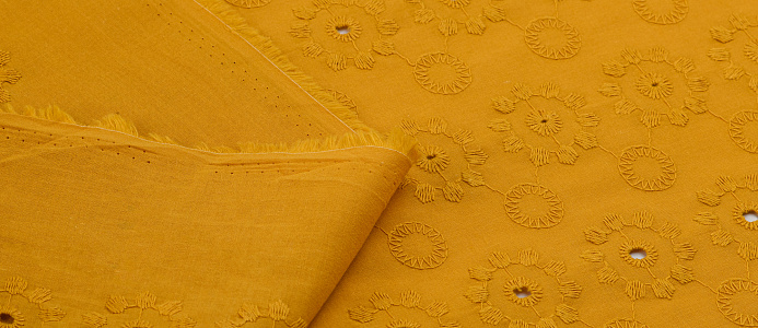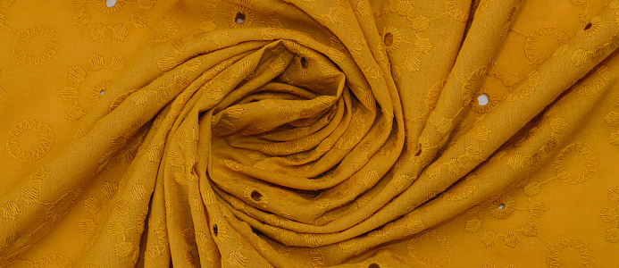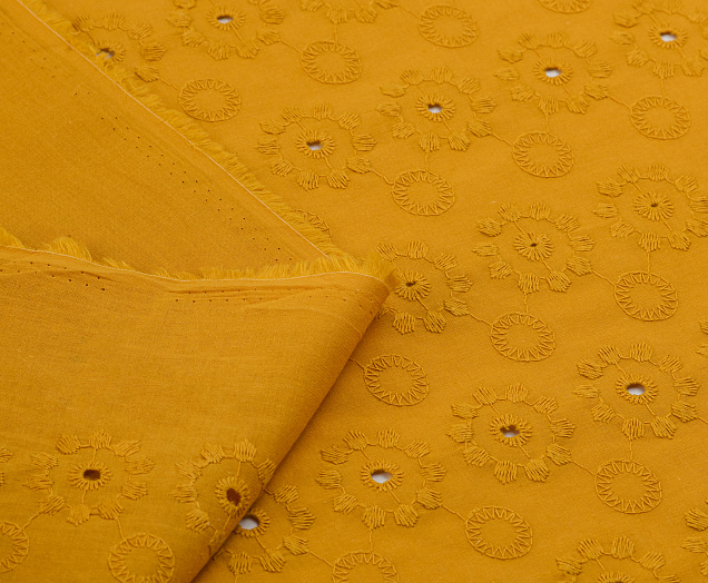 Шитьё - идеальная ткань для пошива летних сарафанов , юбок, платьев и блузок . Легкая , невесомая хлопковая ткань . Вся поверхность полотна расшита орнаментом в виде цветков d: 3,5 см,и гророхом 1,7 см.
