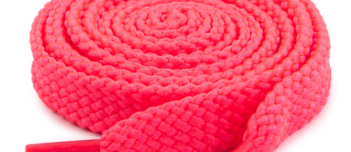 Рисунок у шнурка плотный и напоминает косичку из 6 рядов нити на каждой стороне.