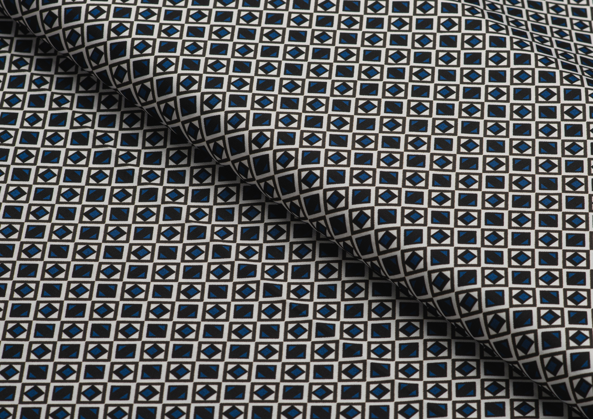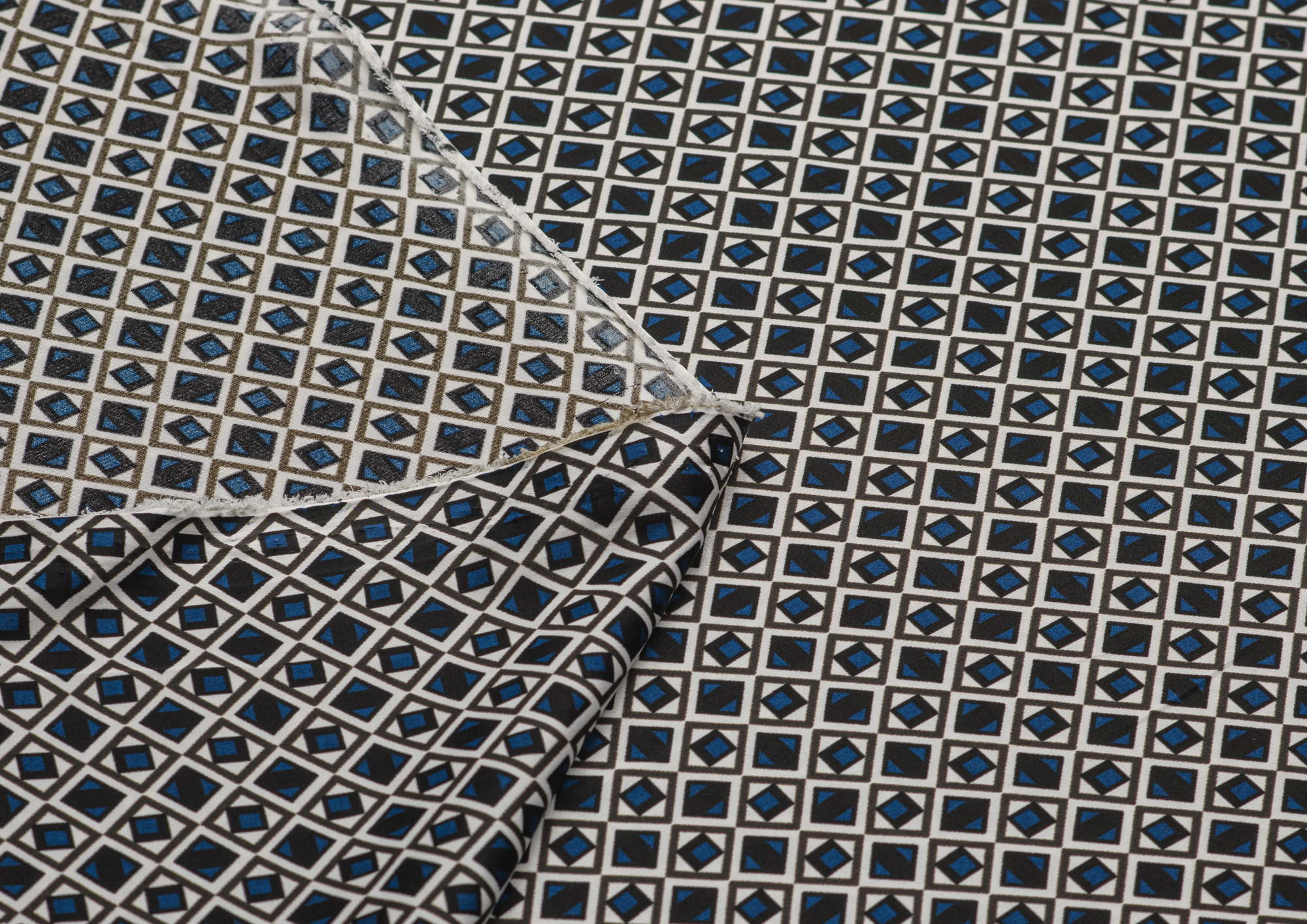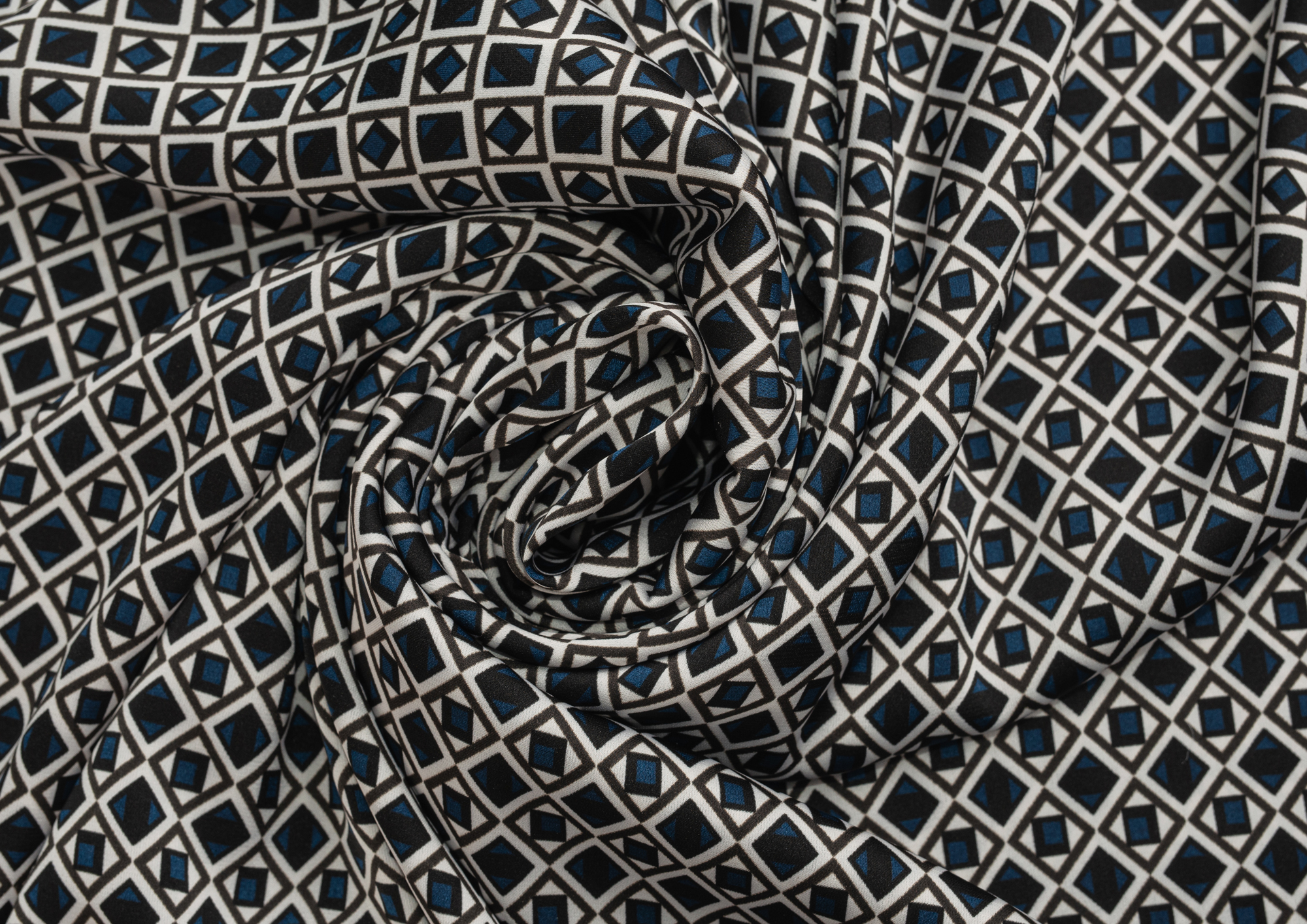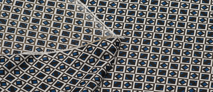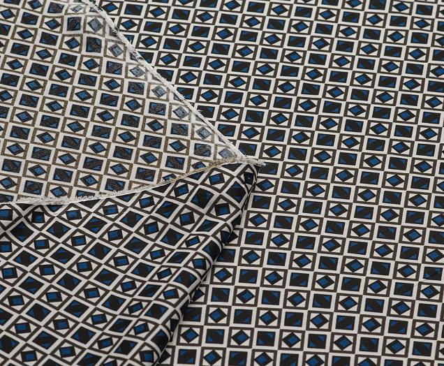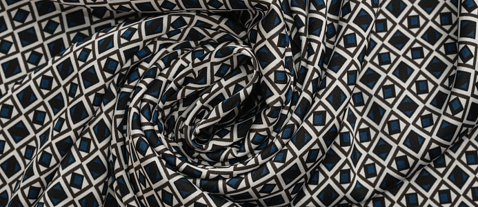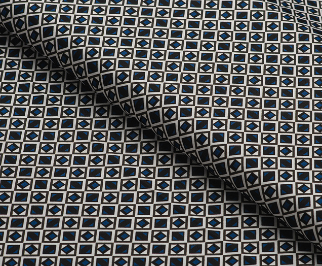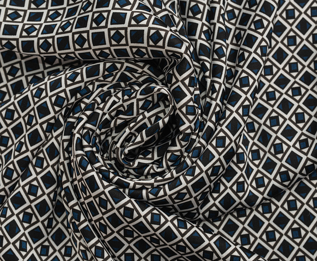 Ткань шелк Бавария принт № 45 Ромбики синие