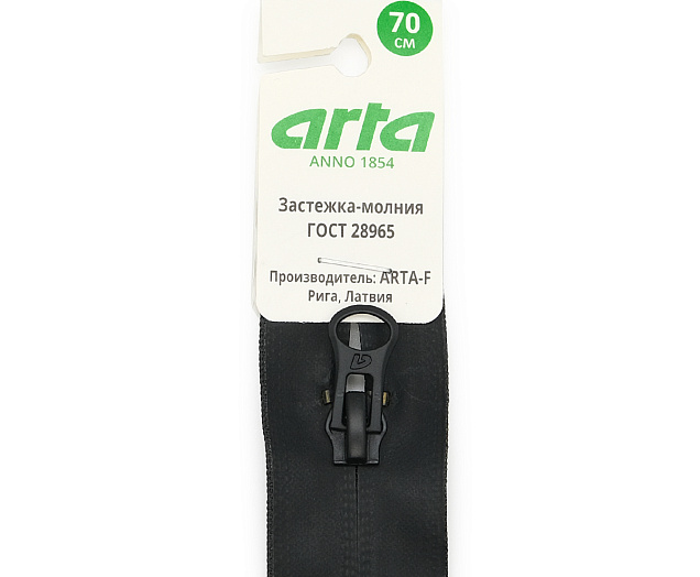 Молния Arta-F витая т.6, 1 замок , Латвия, водоотталкивающая цв.580 черный 70 см