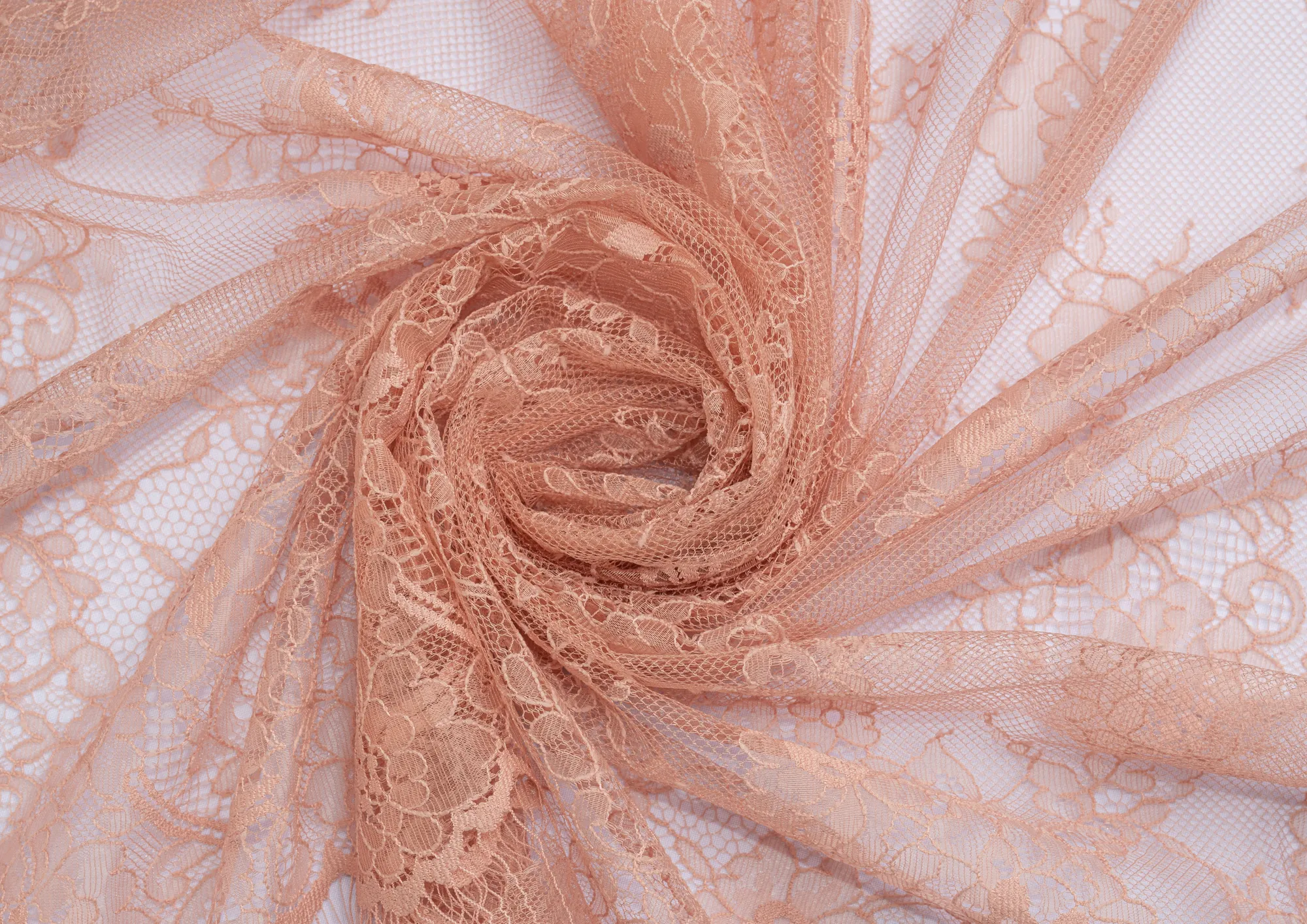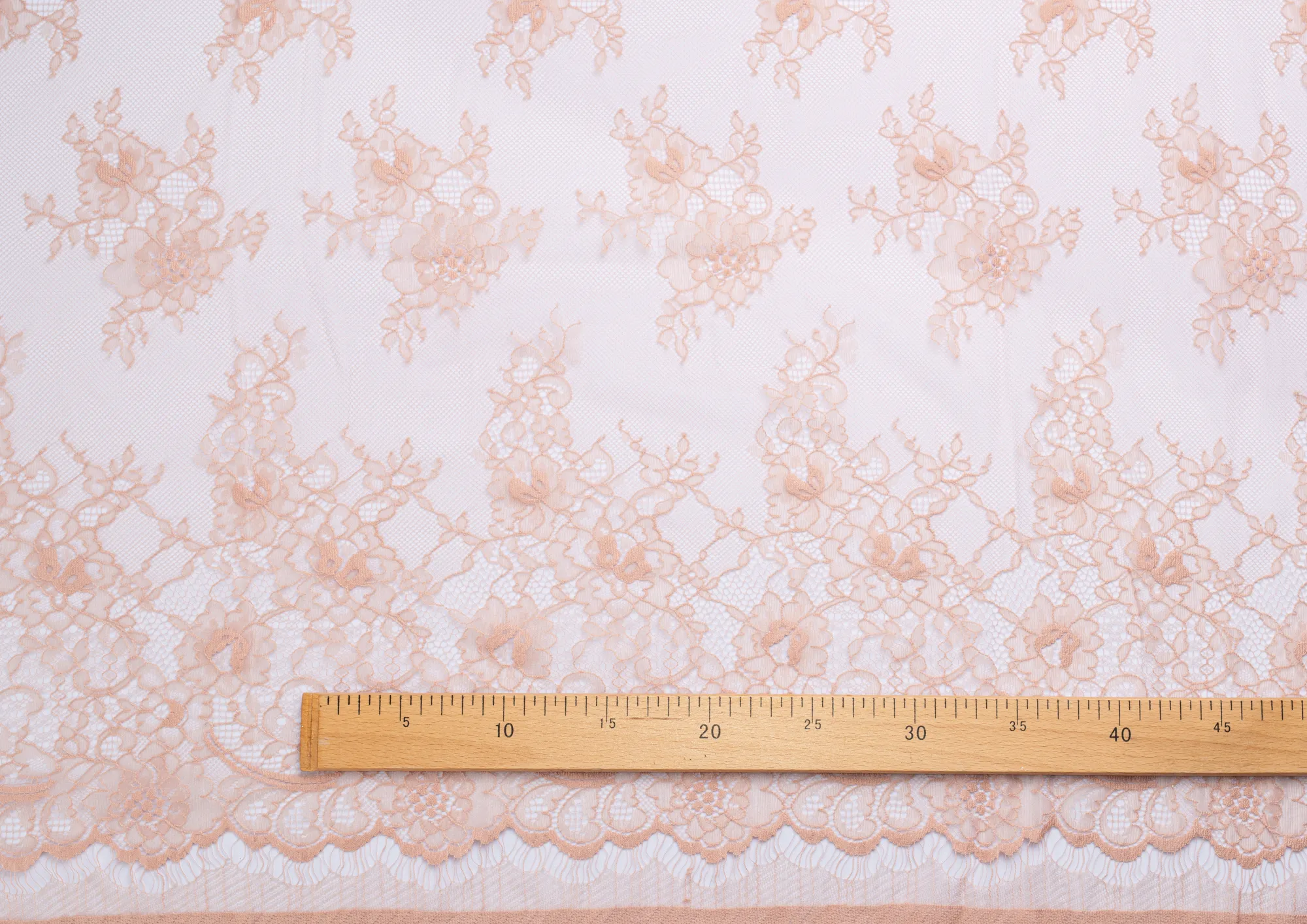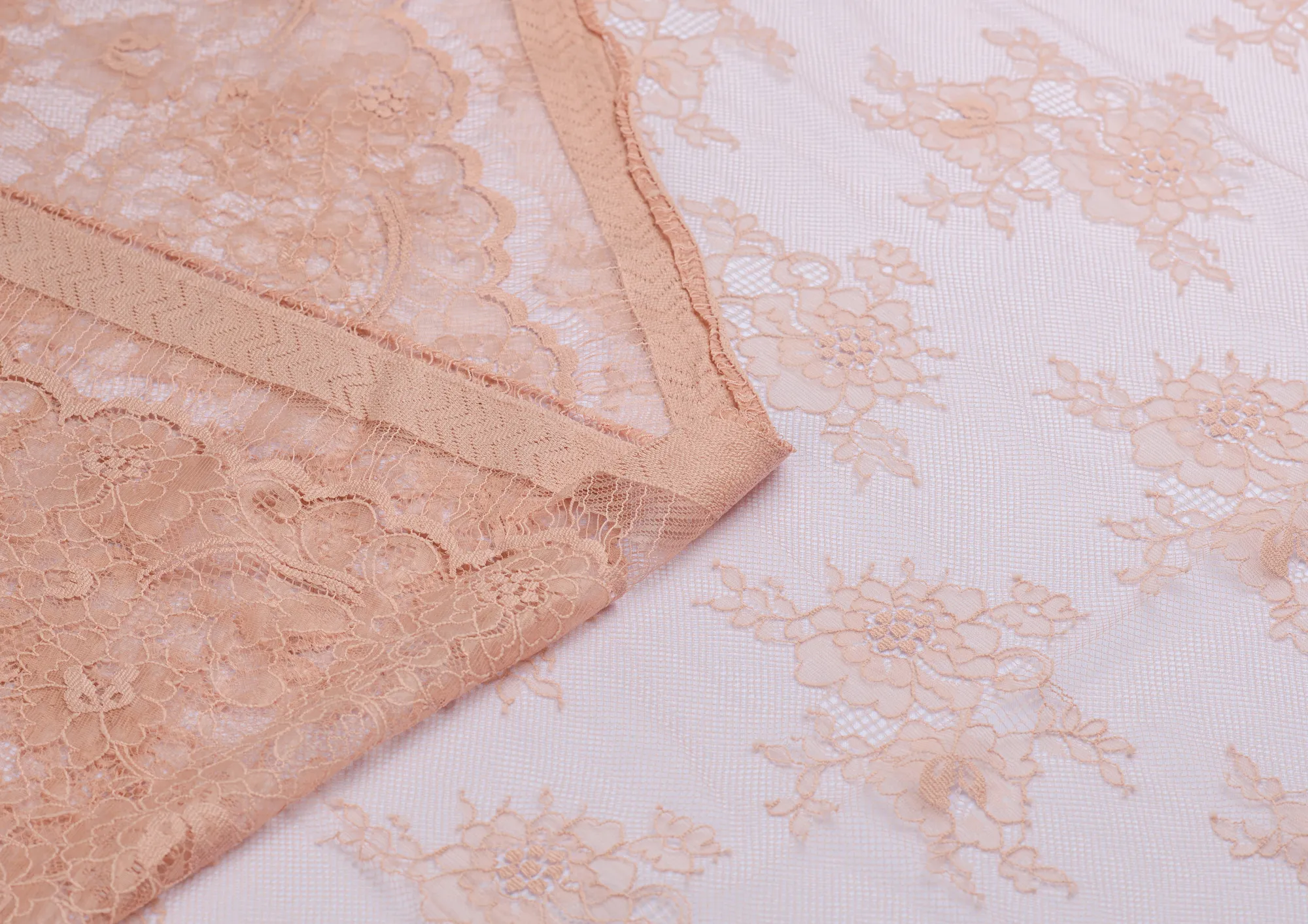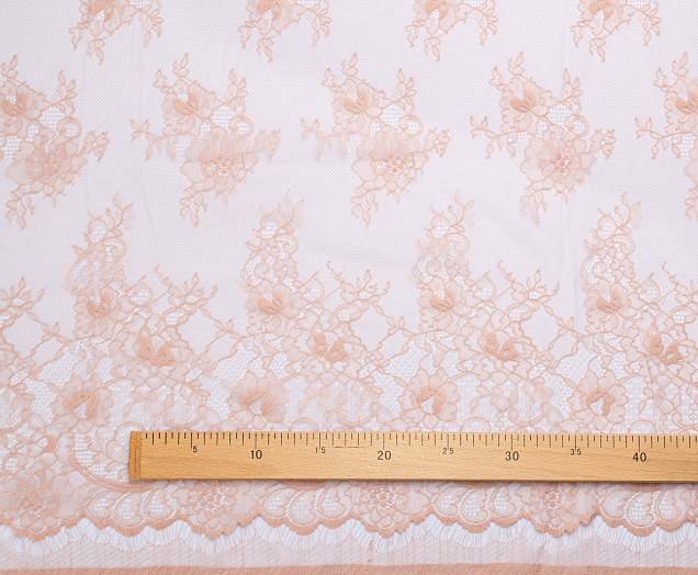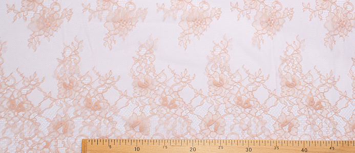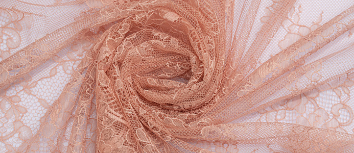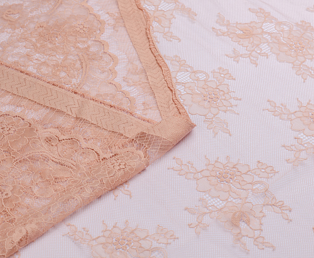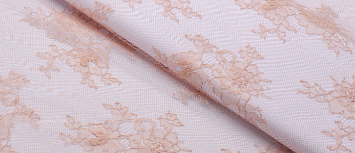 Кружево эластичное, по всем полотну равномерно расположен в тон орнамент. При пошиве требует подклада. Фестоны вырезные. Из кружево шьют нарядные, вечерние, торжественные платья, костюмы, так же пойдет для пошива нижнего женского белья.