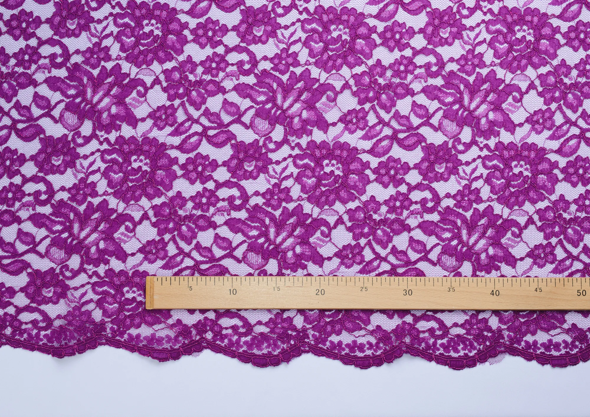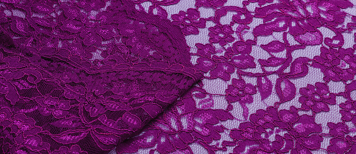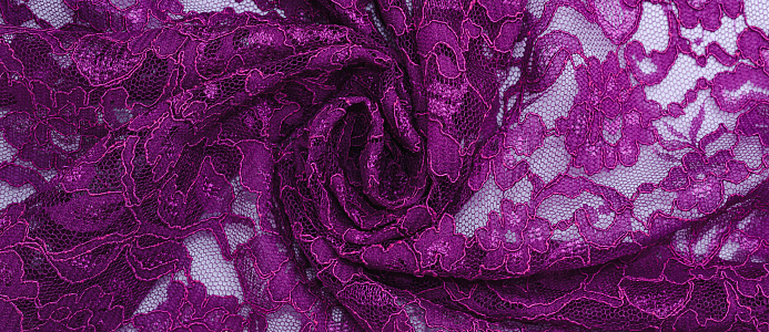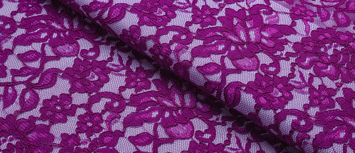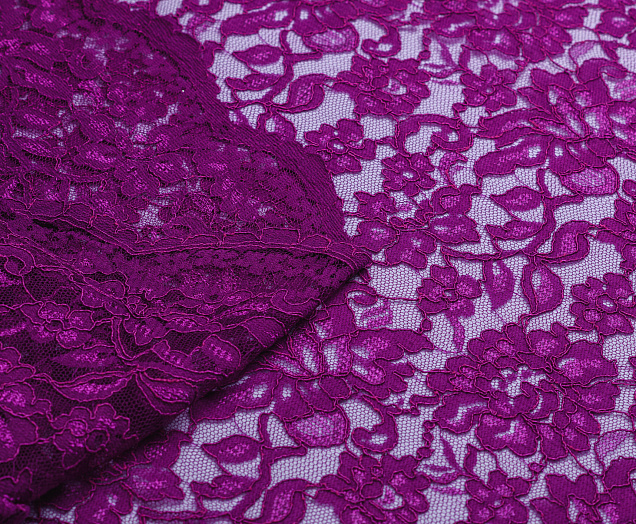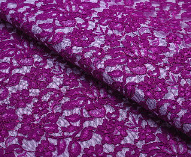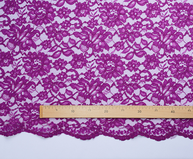 Кружево эластичное, фестоны с двух сторон, по всем полотну равномерно расположен в тон 3d орнамент. При пошиве требует подклада. Из кружево шьют нарядные, вечерние, торжественные платья, костюмы.