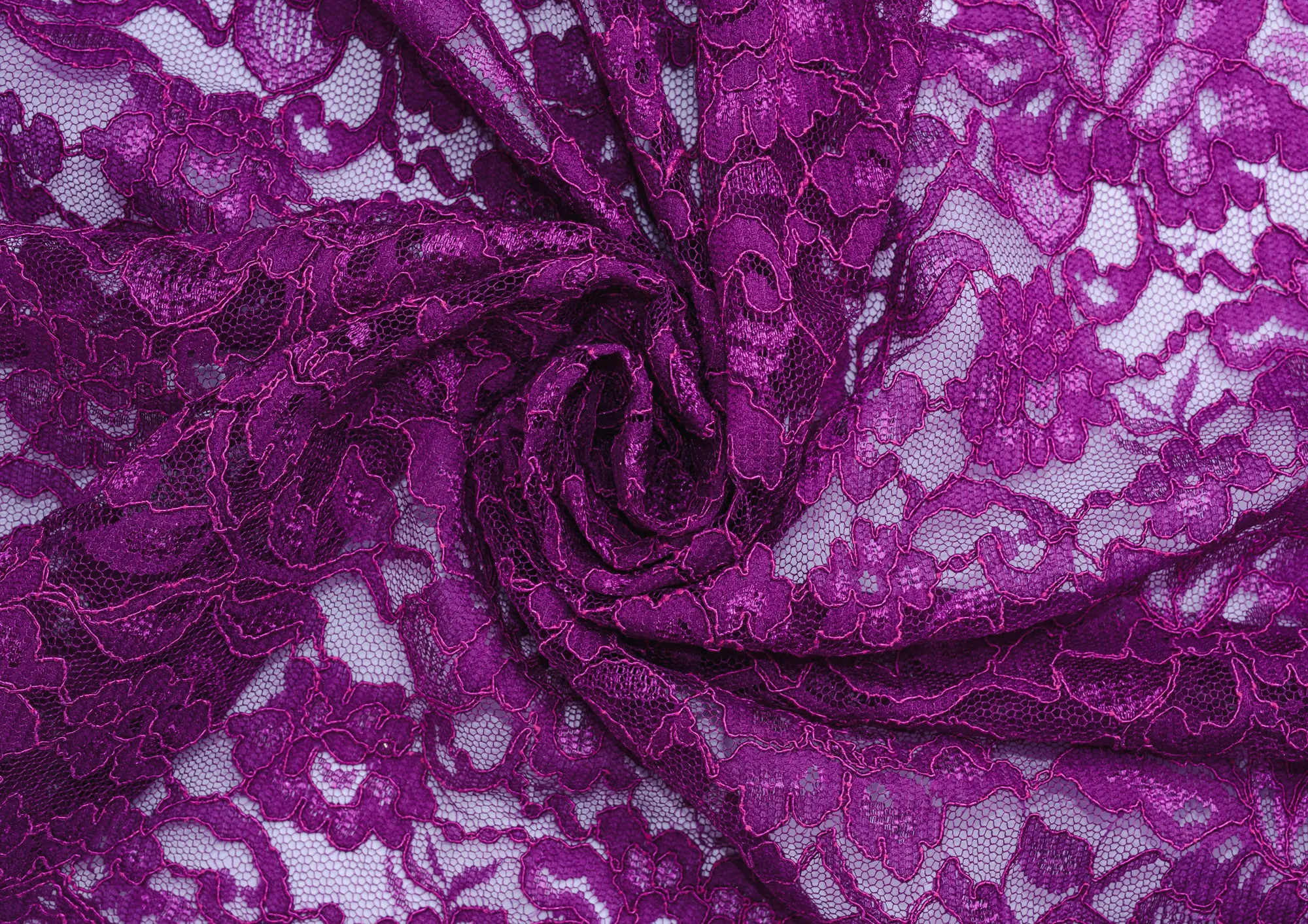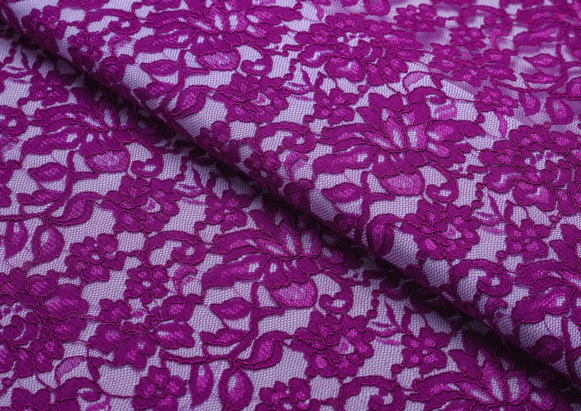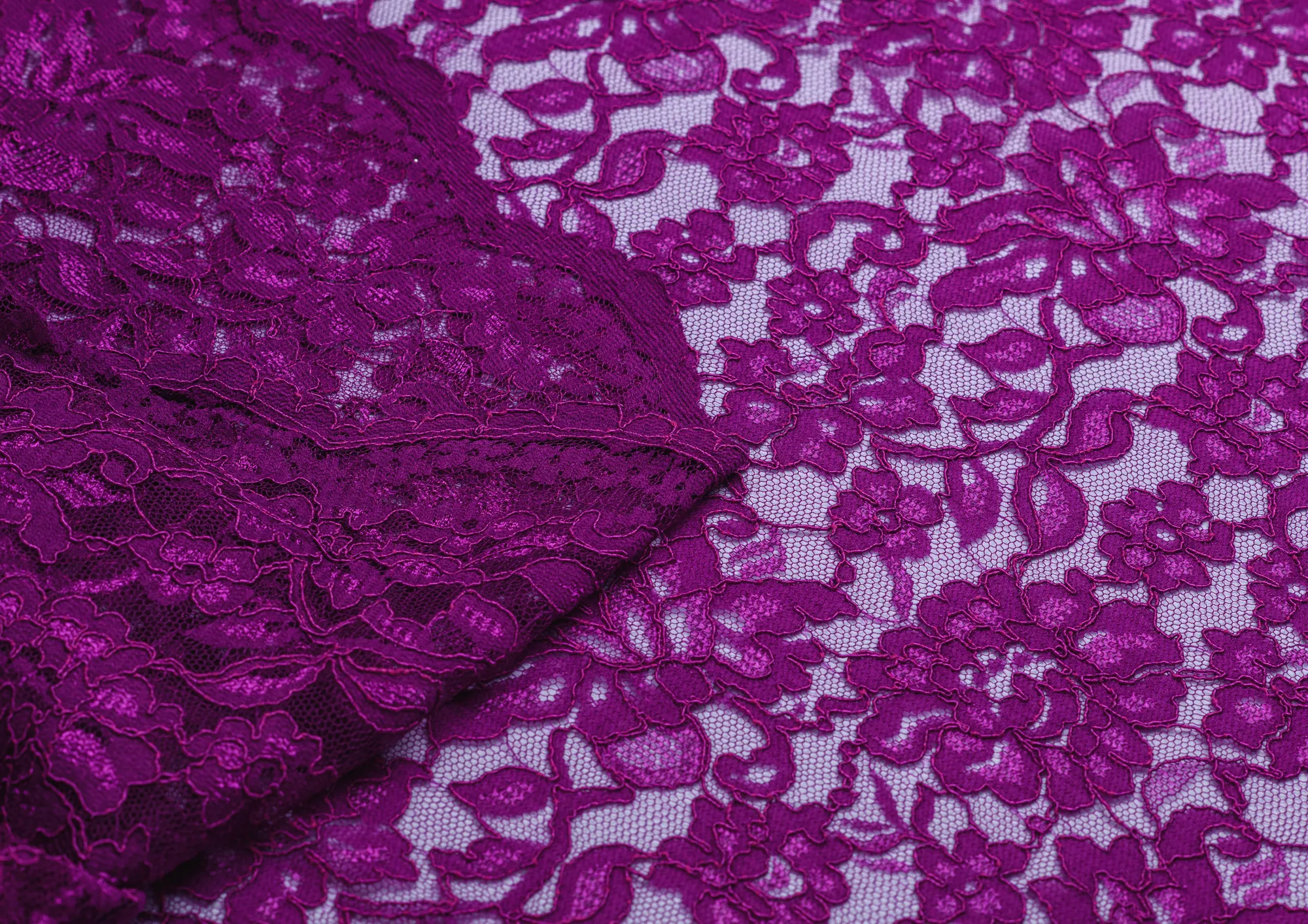 Кружево эластичное, фестоны с двух сторон, по всем полотну равномерно расположен в тон 3d орнамент. При пошиве требует подклада. Из кружево шьют нарядные, вечерние, торжественные платья, костюмы.