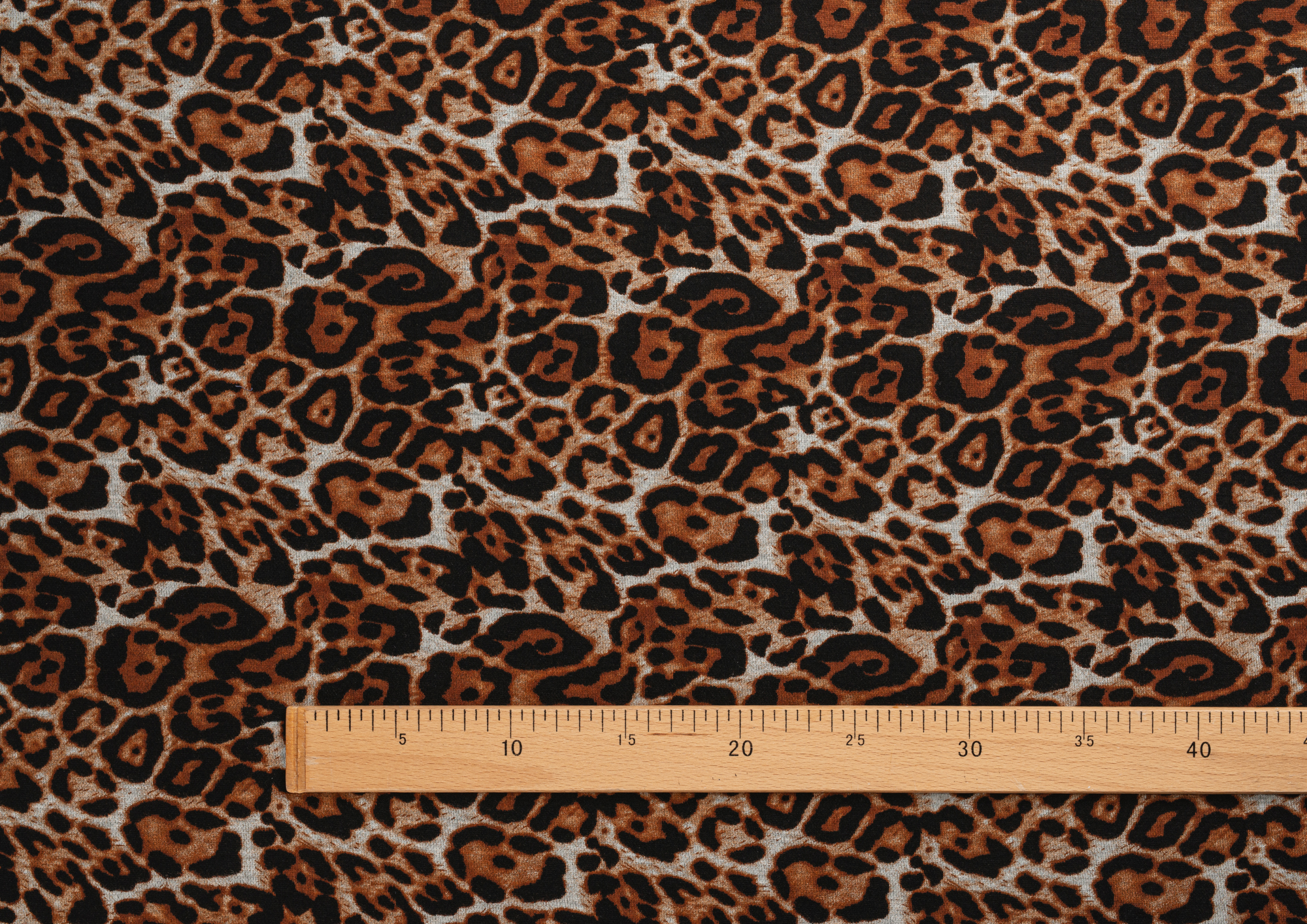 Легкий трикотажный материал, приятный на ощупь. Ткань эластичная, мягкая, матовая. По всей поверхности полотна расположен принт. Вискоза не накапливает статического электричества, приятна к коже. Из нее получаются великолепные топы, платья, сарафаны, водолазки и майки.