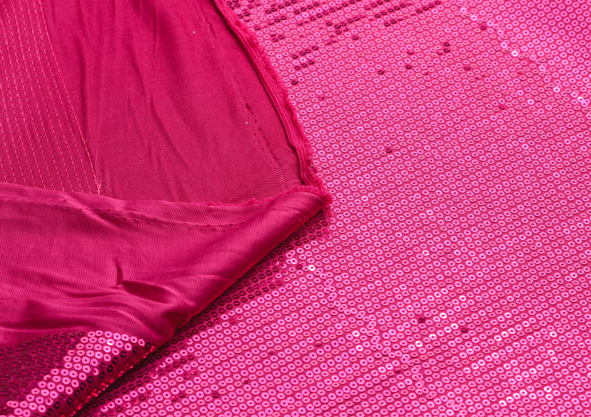 Тонкий трикотаж, поверхность которого расшита пайетками диаметром 0,3 см .Рабочая ширина 140 см. Ткань эластичная , хорошо подходит для пошива сценических костюмов , для декорирования одежды.