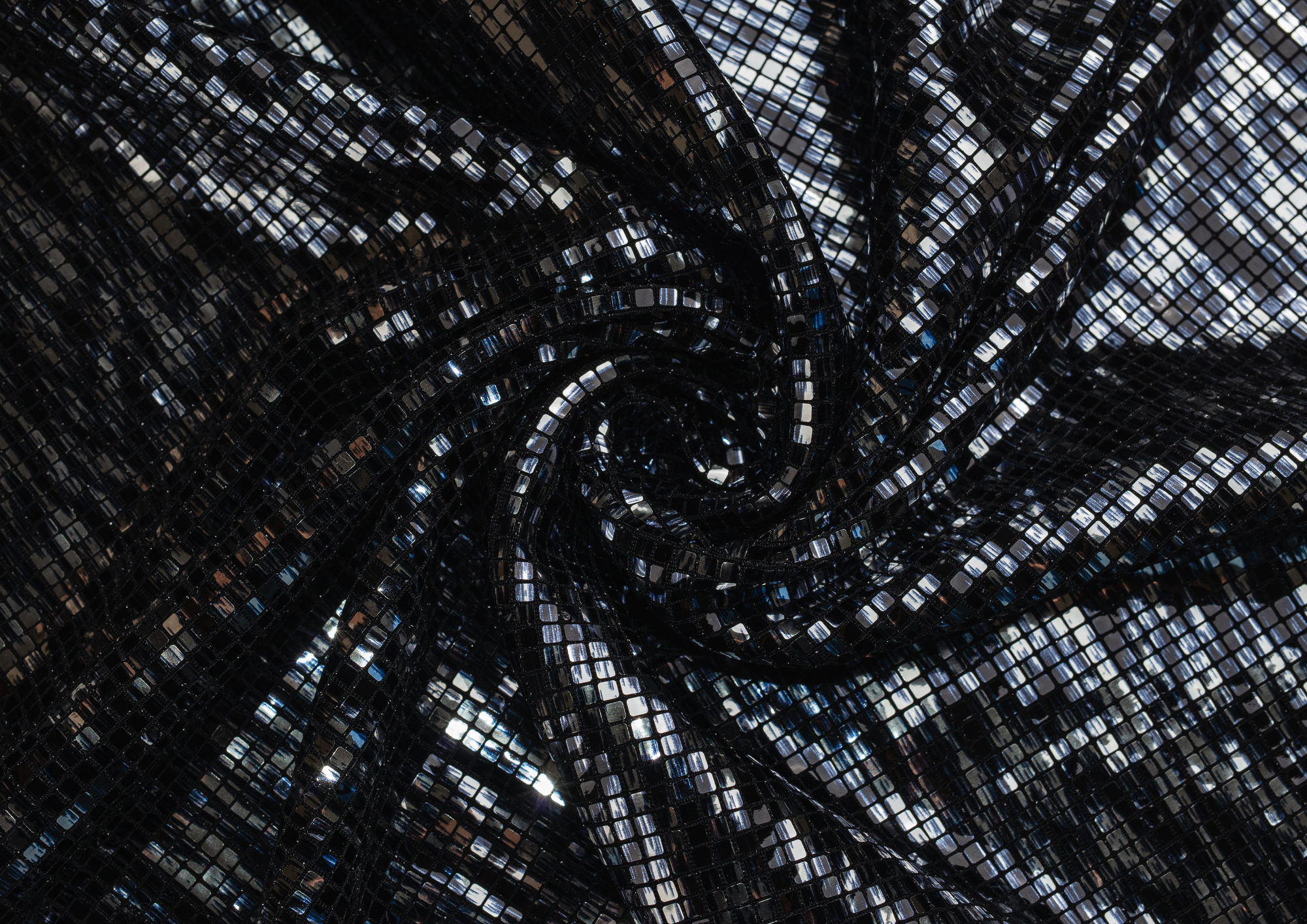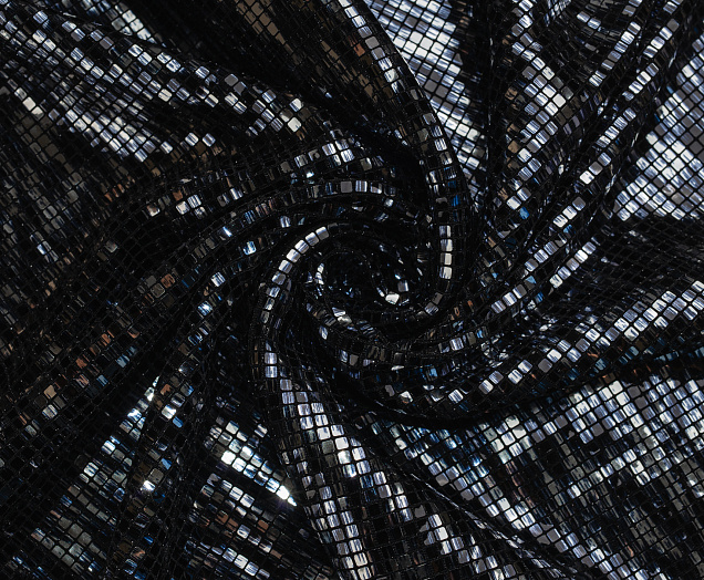 Ткань пайетки на трикотаже цв. серебристо-черный