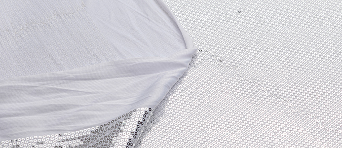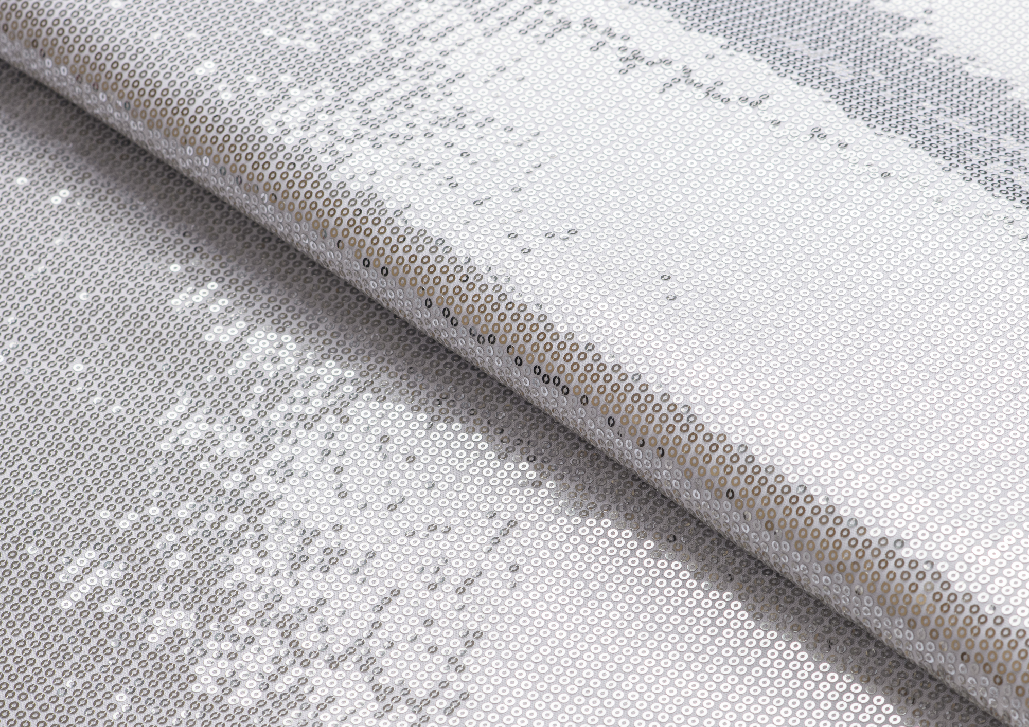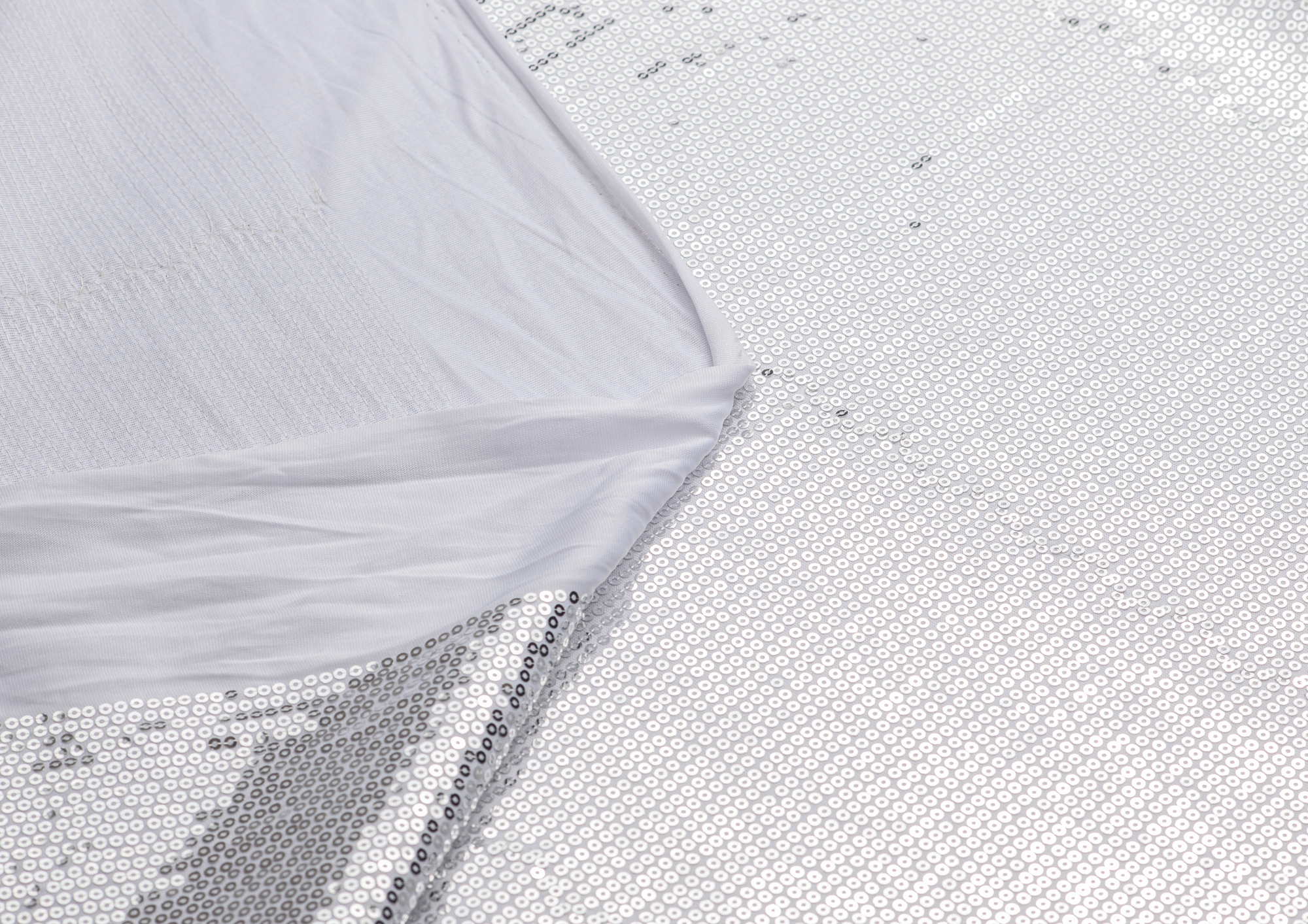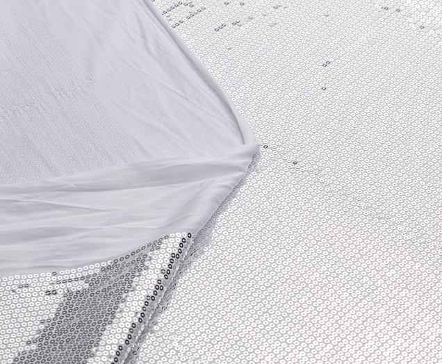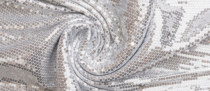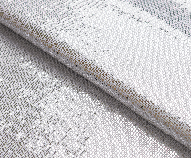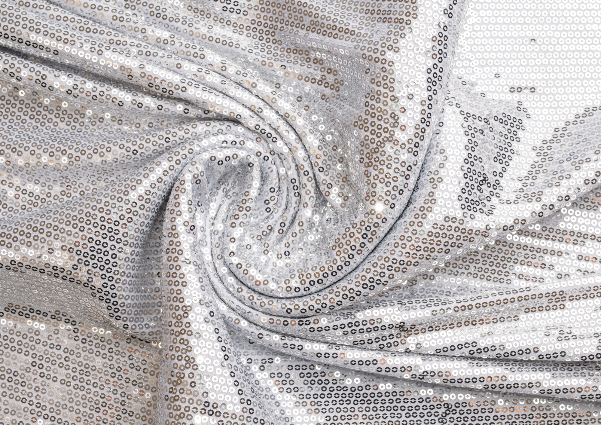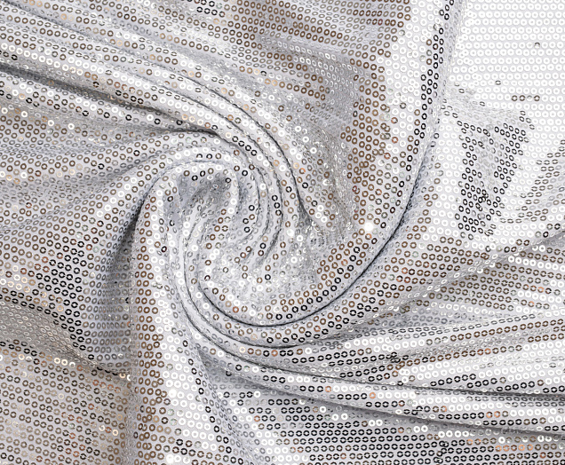 Тонкий трикотаж, поверхность которого расшита пайетками диаметром 0,3 см .Рабочая ширина 140 см. Ткань эластичная , хорошо подходит для пошива сценических костюмов , для декорирования одежды.