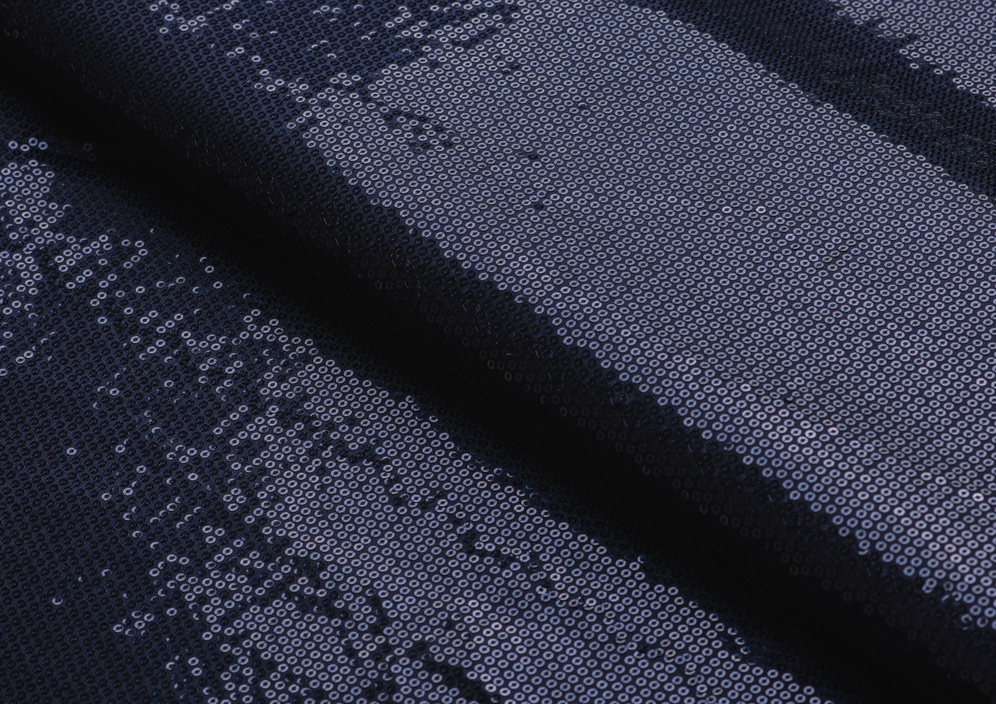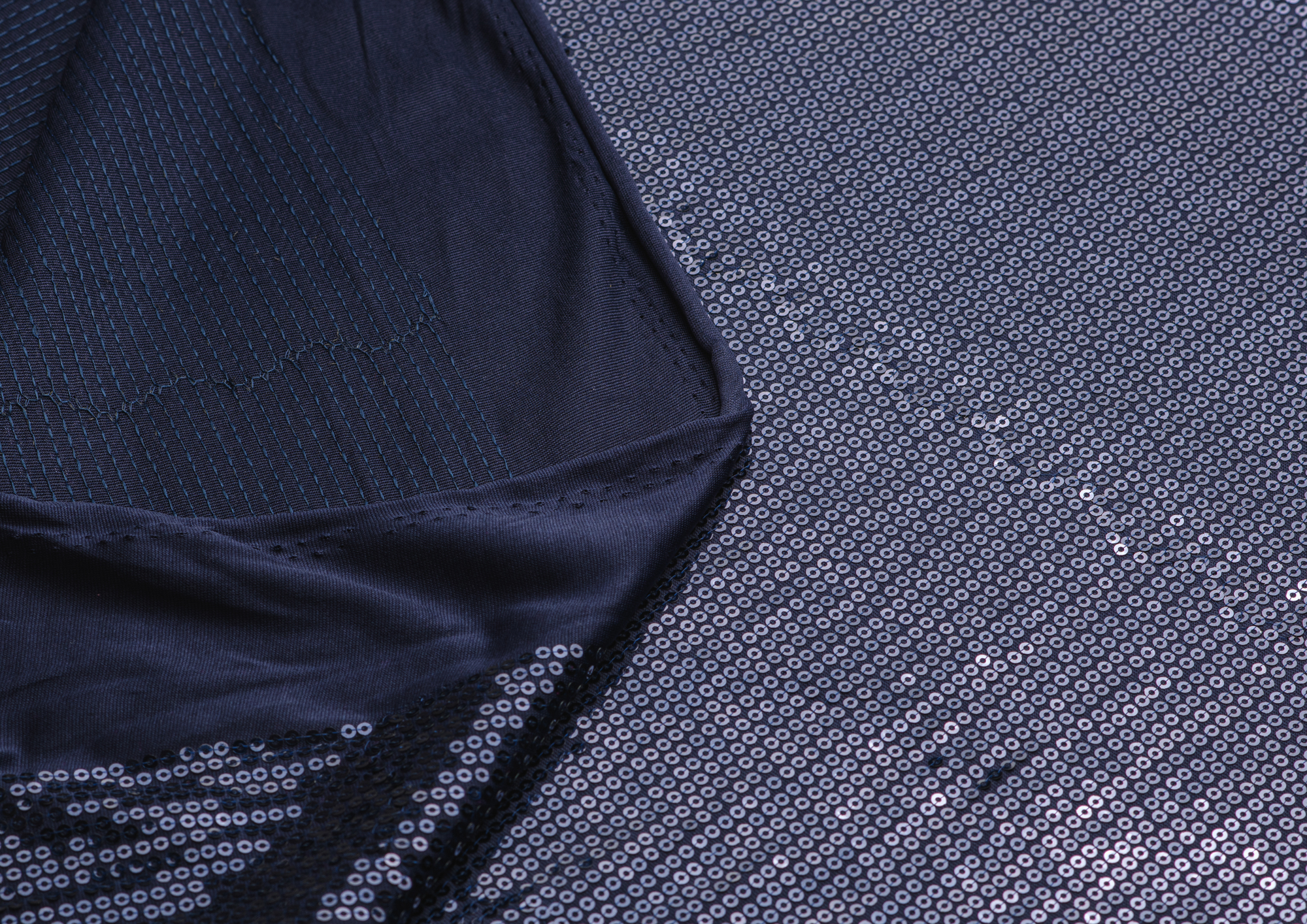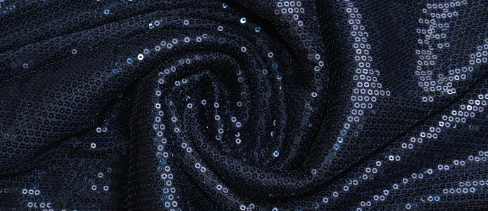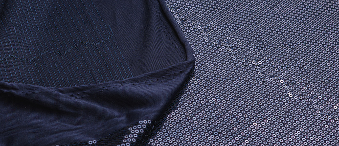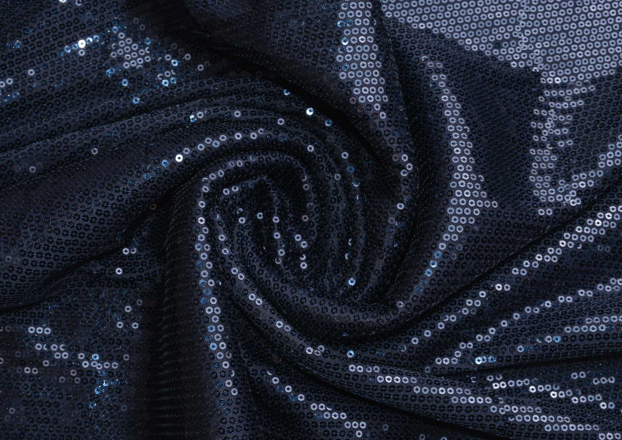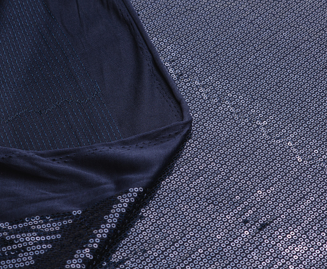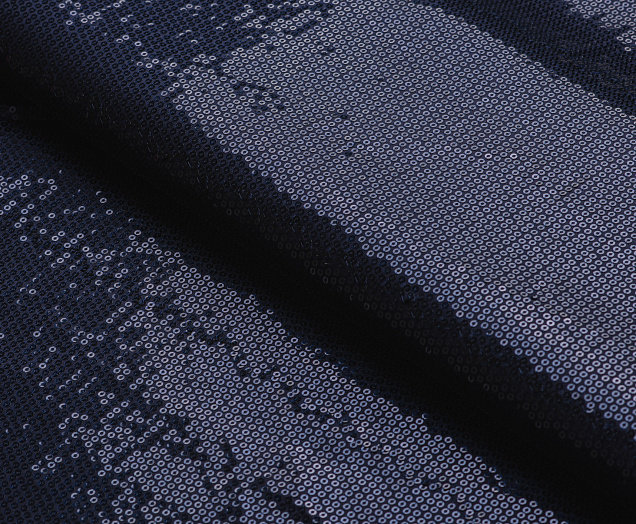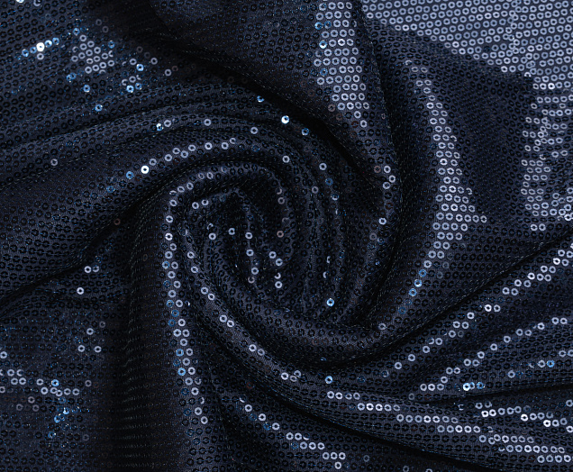 Тонкий трикотаж, поверхность которого расшита пайетками диаметром 0,3 см .Рабочая ширина 140 см. Ткань эластичная , хорошо подходит для пошива сценических костюмов , для декорирования одежды.