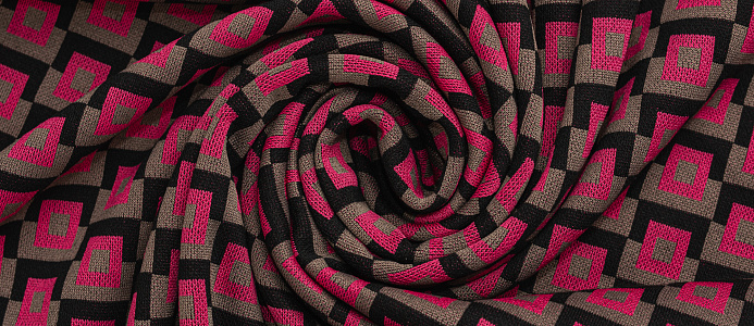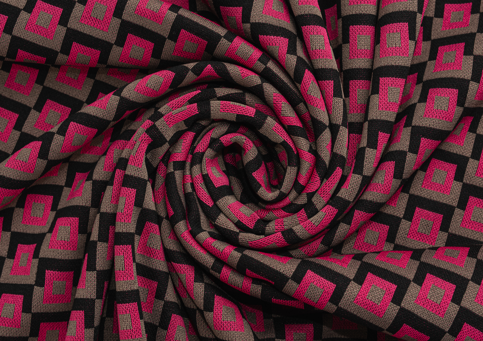 Джерси 3589 Ромбы розовый/бежевый/черный