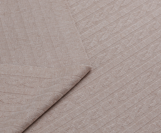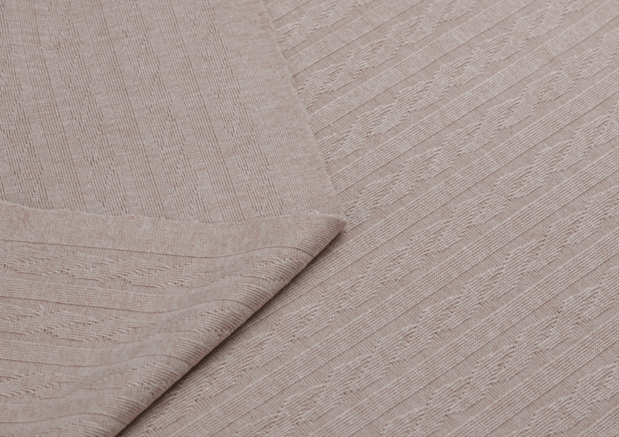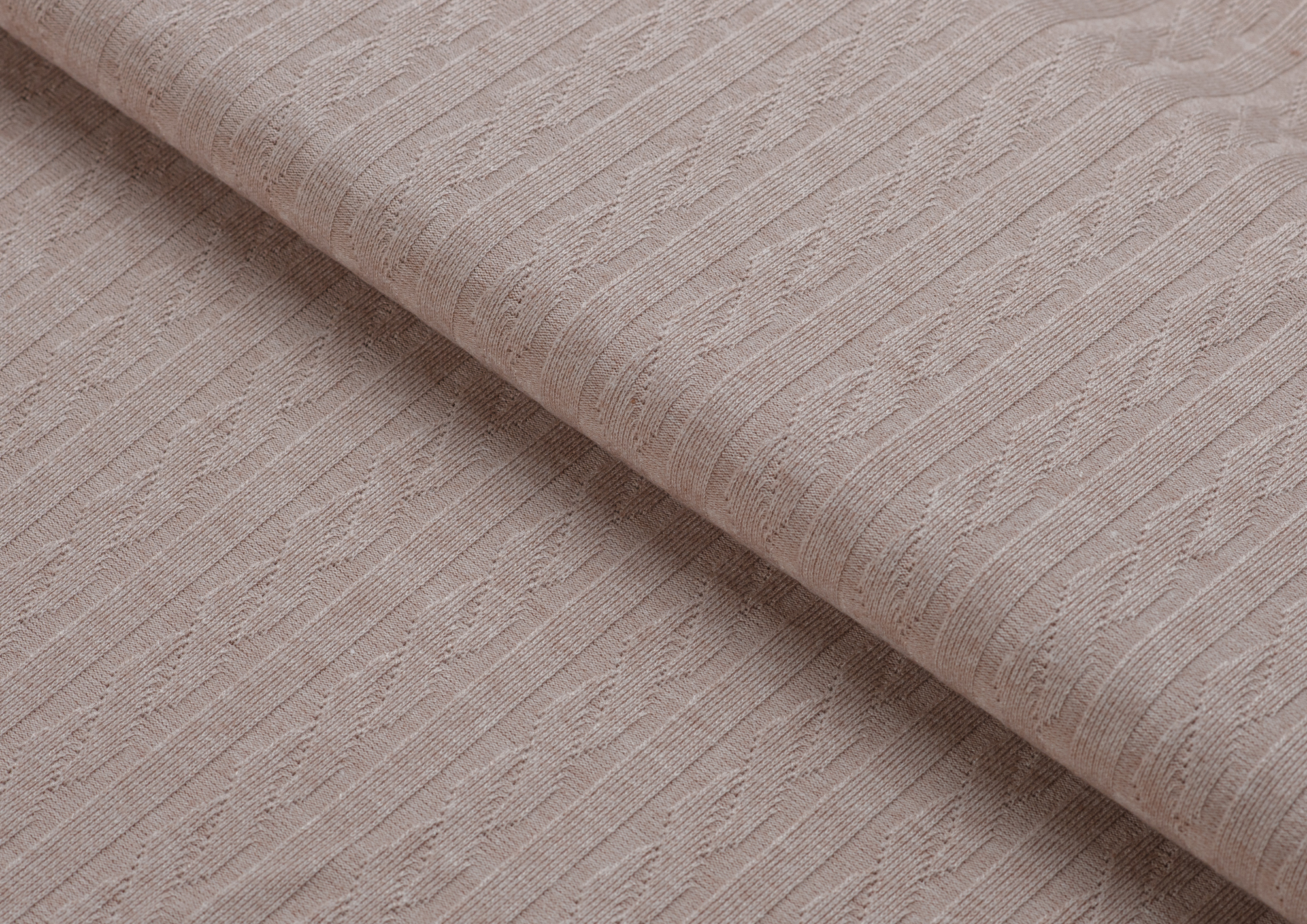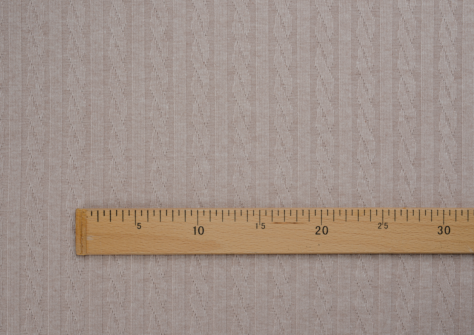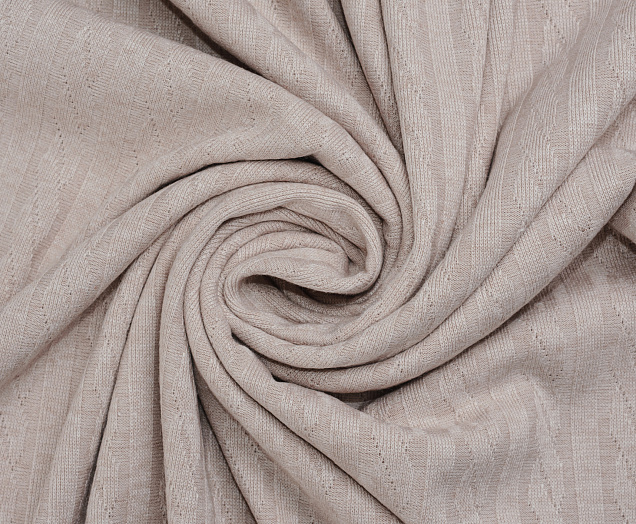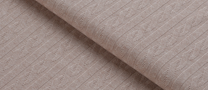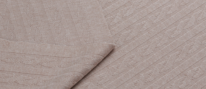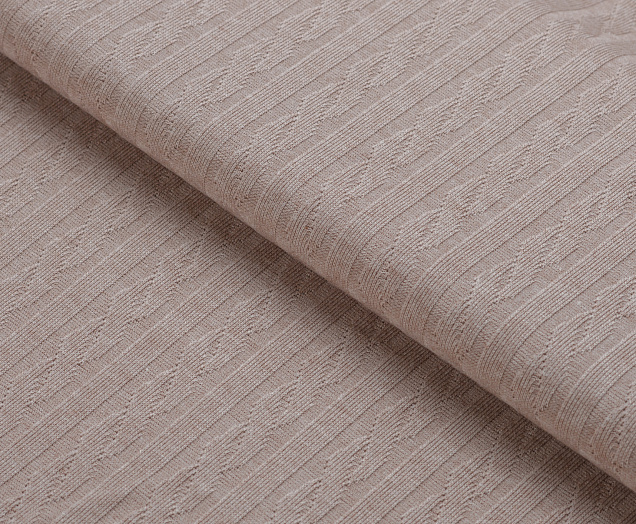 Джерси-косичка, мягкое, приятное на ощупь вязаное полотно. Рисунок идет вдоль полотна. Позволяет носить изделие в теплую и холодную погоду.  Ткань приятная к телу. Подойдет для пошива платья, кардигана, свитера, а так же в изготовлении пледов, декоративных подушек и т.д.